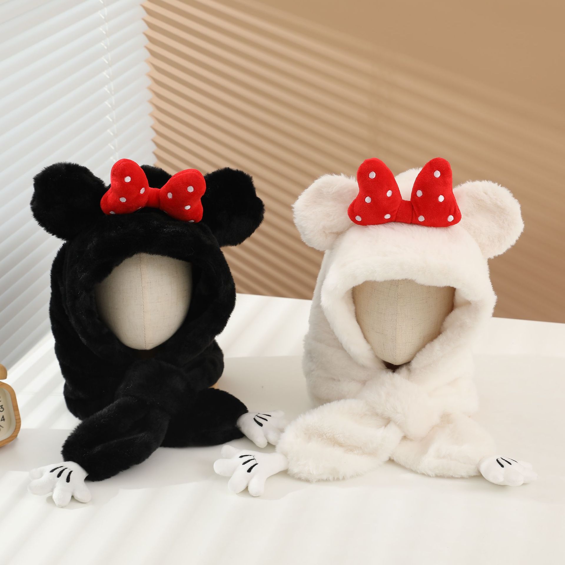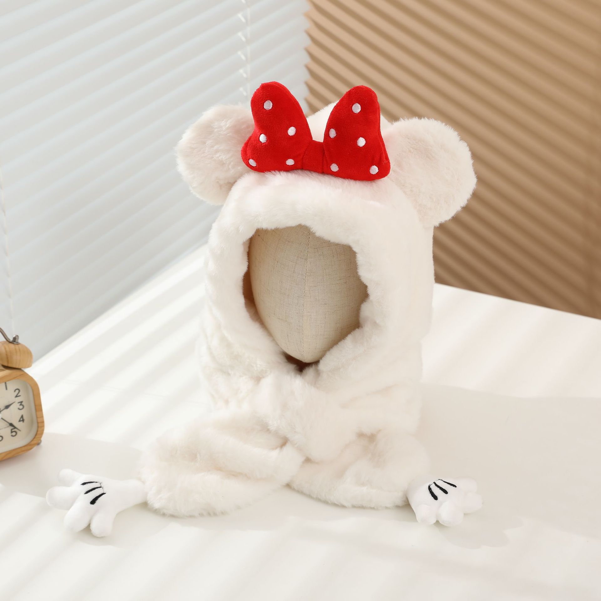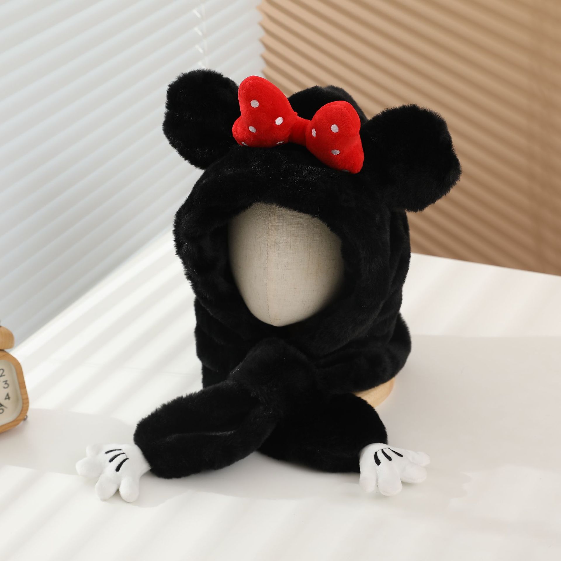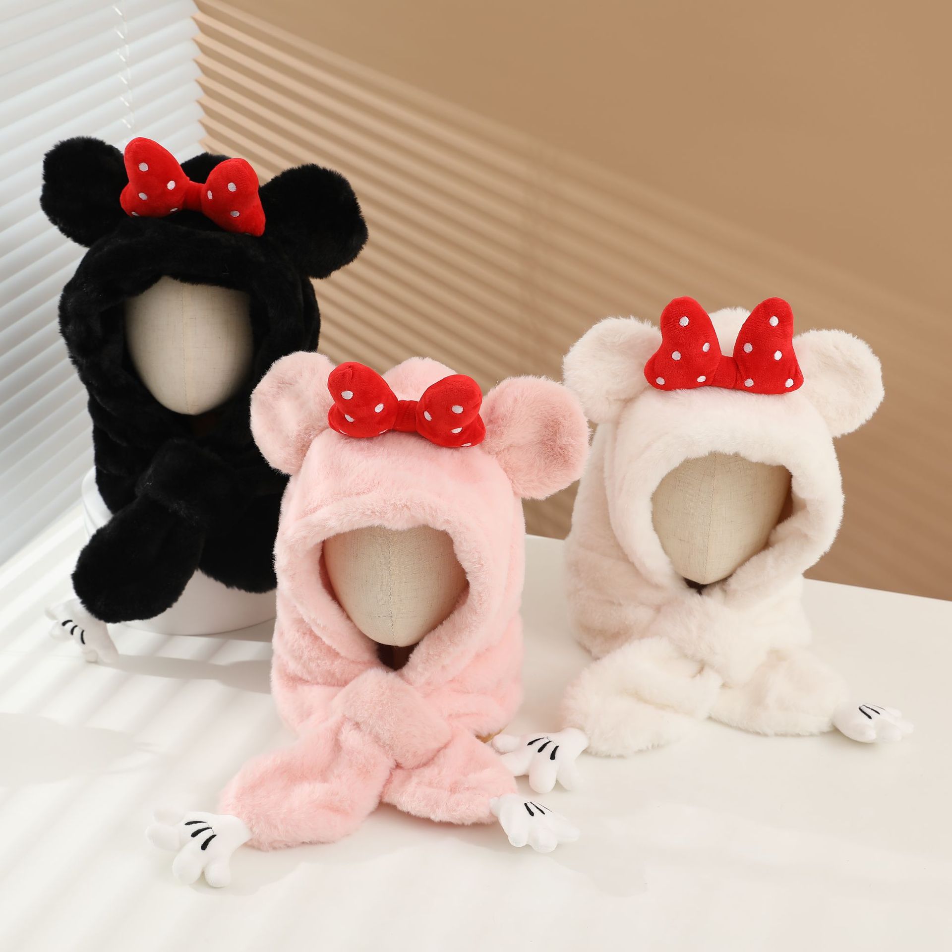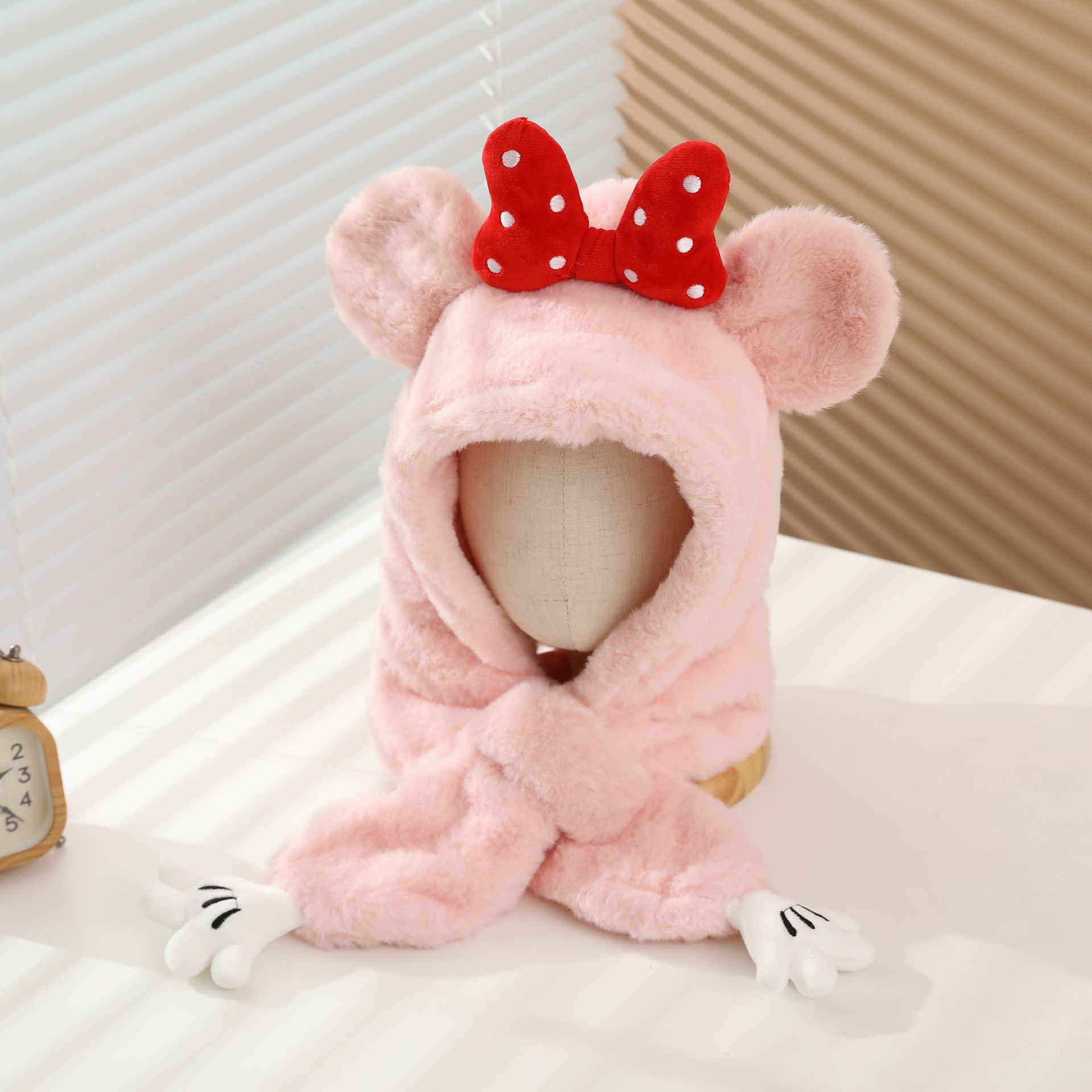 冬の男女児童一体帽子セットアニメ熊人形のぬいぐるみが首を囲んでかわいい保温快適な首を囲んでいる