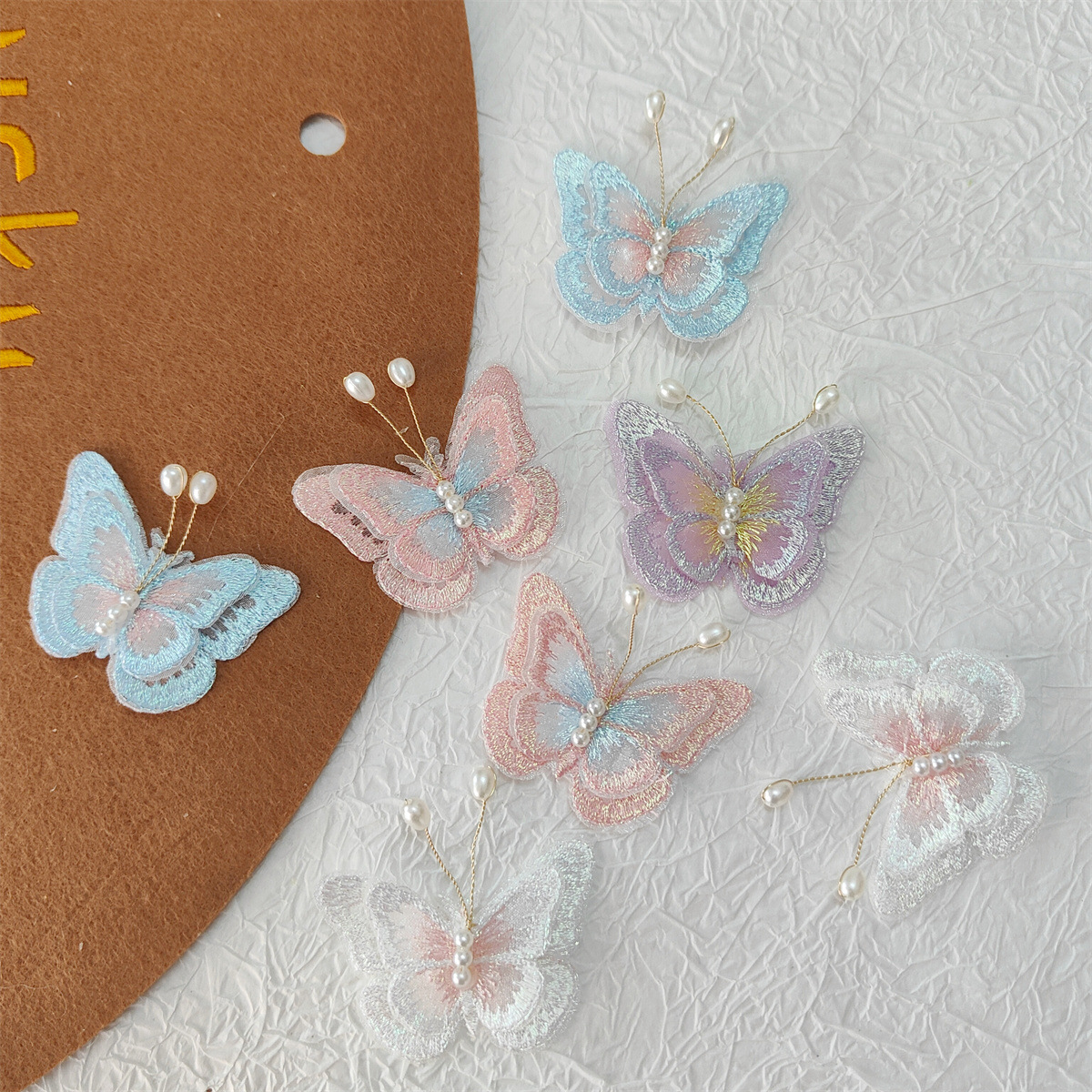 小清新超仙二重刺繍網糸真珠蝶部品diy児童髪飾り服装靴靴下包補助材料