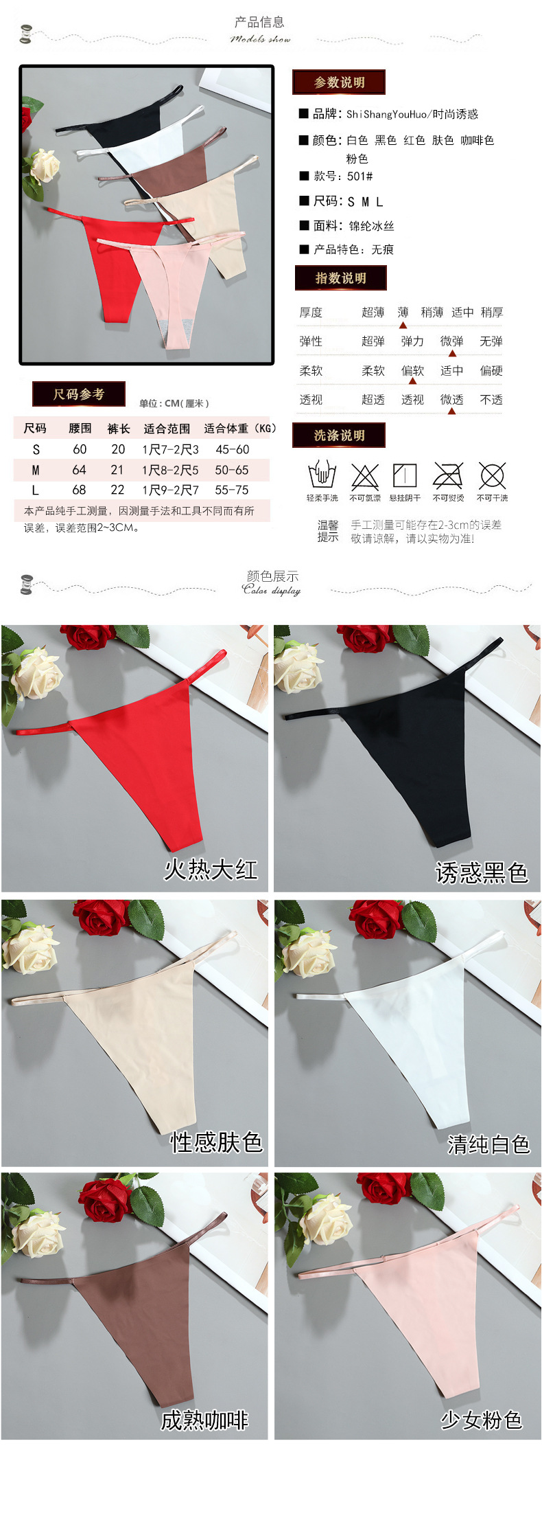 无痕健身瑜伽专用夏季轻薄冰丝隐形防尴尬线Y线抑菌裆女丁字内裤