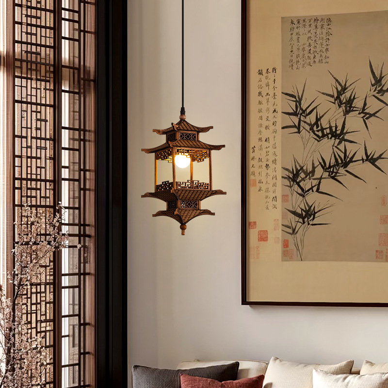 中国风古建筑玄关茶室吊灯新中式宋代美学复古房子酒店民宿卧室灯
