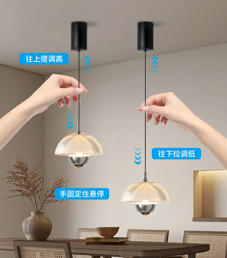 升降手扫花苞床头吊灯意式极简轻奢高级感主卧室房间玄关吊线灯
