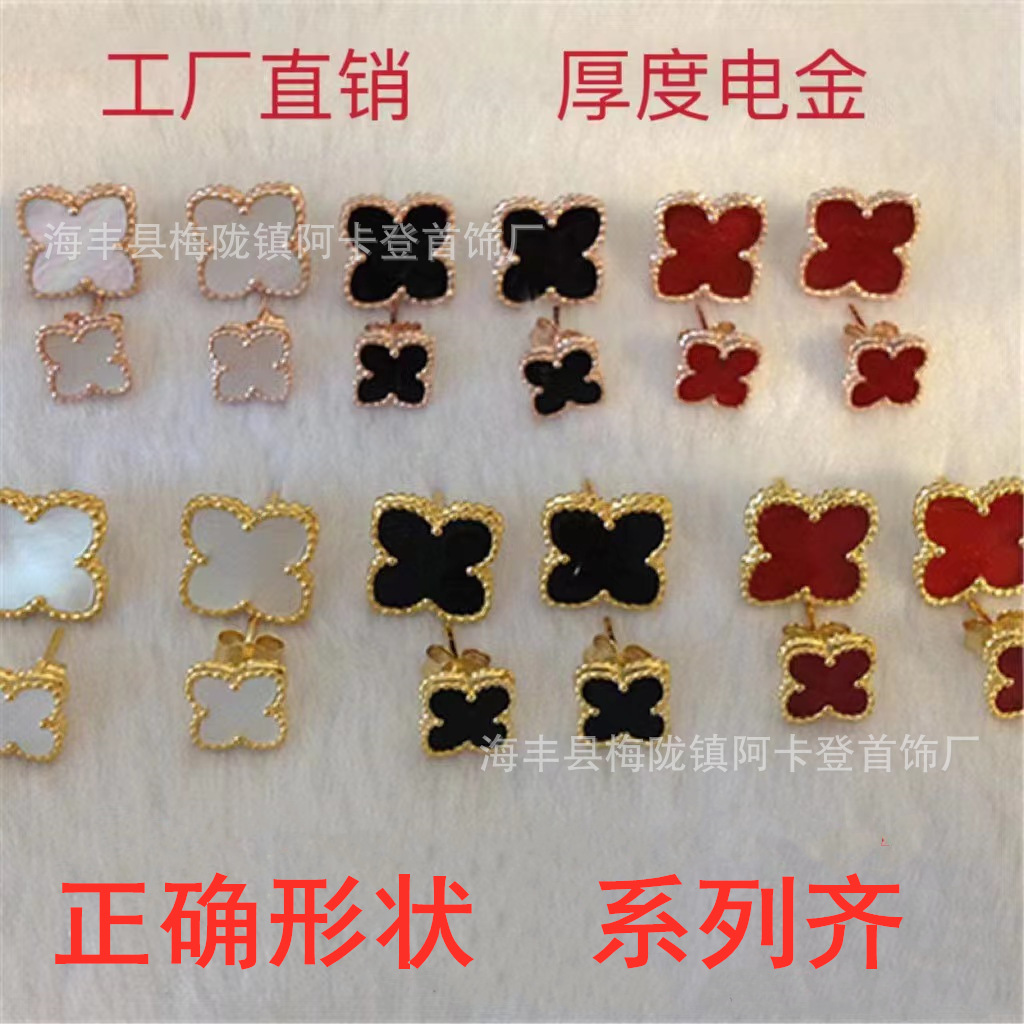 工場直販Vゴールド高級版四つ葉クローバーイヤリング、女性用両面マザーオブパールイヤリング、非アレルギー性シルバーニードルイヤリング