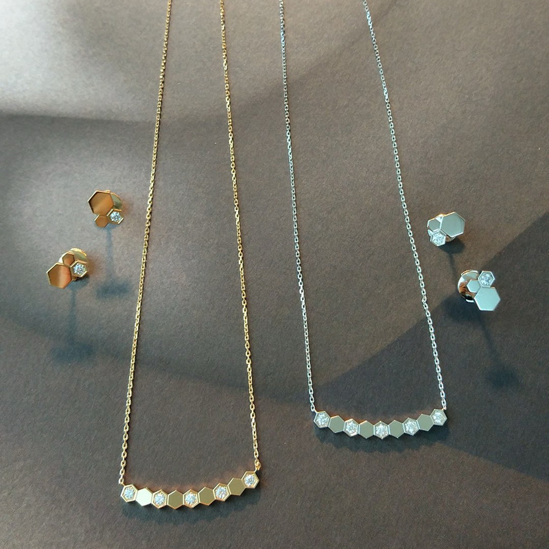 CNCハニカム笑顔ネックレス高バージョンひし形蜂の巣メッキ18kバラ金鎖鎖ファッション小衆メーカー直