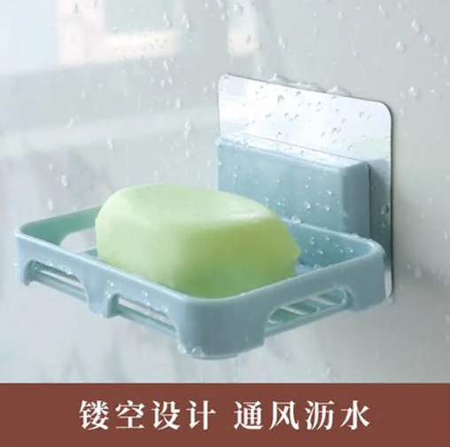 穴を開けない壁掛け式トイレの棚に石鹸箱を貼り付けて、家庭の壁に水を切ることができます。