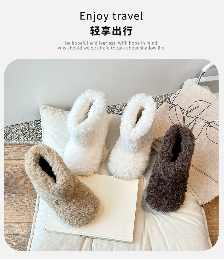 儿童雪地靴圈圈绒女童毛毛靴子新款鞋子套筒鞋宝宝棉鞋加绒冬季鞋