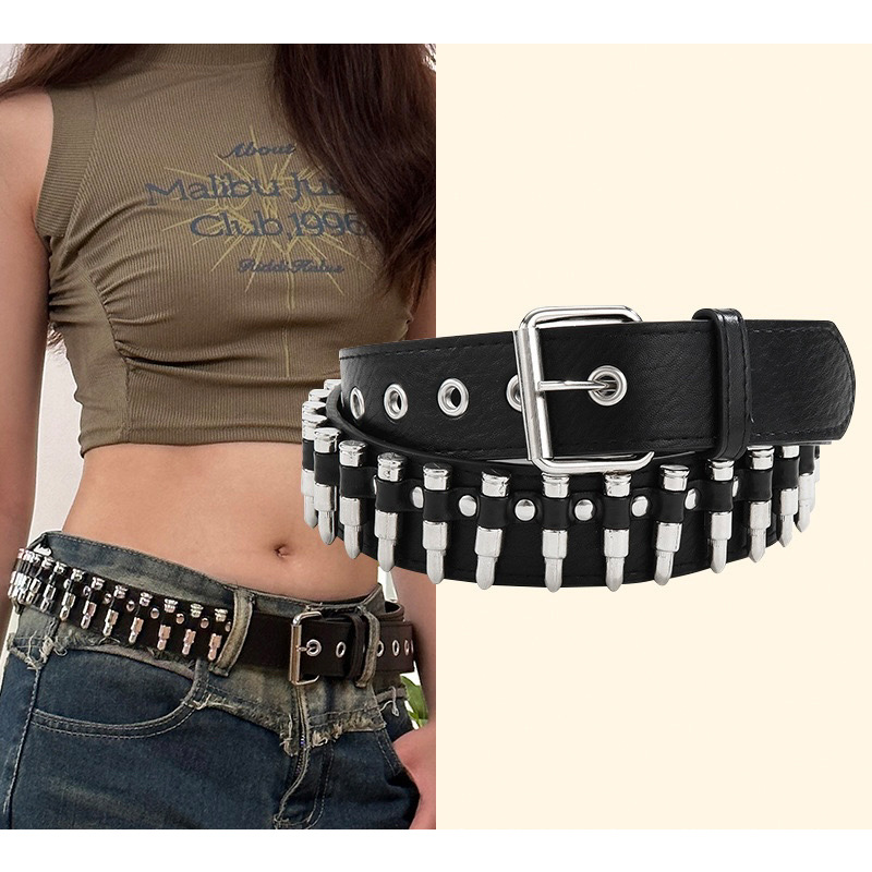 超クール亜文化y2k弾丸弾頭ベルト黒ギャルパンク中性個性男女ジーンズベルト