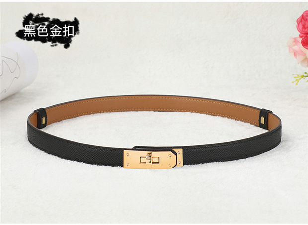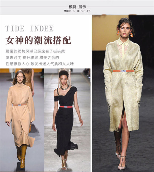 本革ベルト女性用高級感女性ファッション腰飾りウエストシール牛革細いベルトにワンピースを合わせて飾ります。