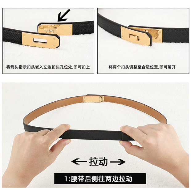 女性の針はベルトの柔らかい皮の細いベルトを掛けてズボンの2024夏の新型の韓国版のカジュアルな百合のジーパンのベルトを配合します。