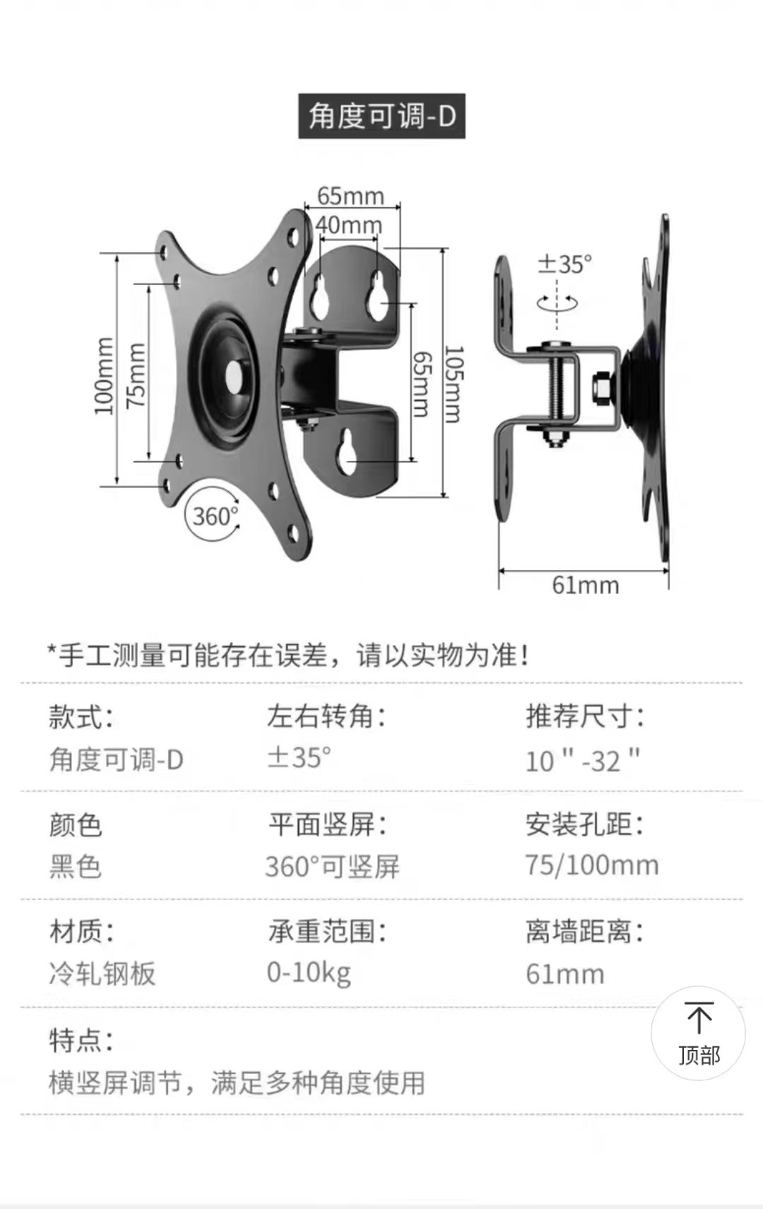 汎用コンピュータディスプレイスタンド電気商生放送回転ハンガー工場ncスクリーン万向壁掛け家庭用オフィス