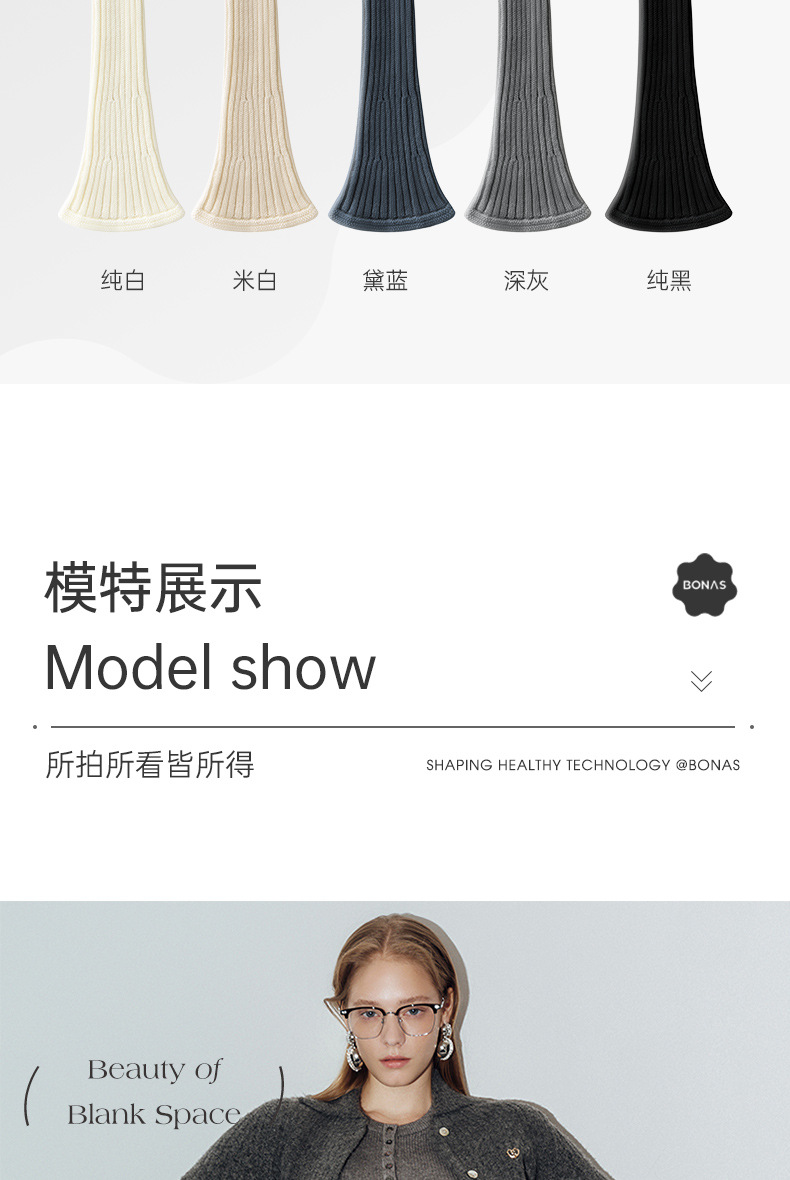 秋冬毛线针织纯色微喇叭口Y2Y堆堆袜套显瘦百搭中筒坑条小腿袜女
