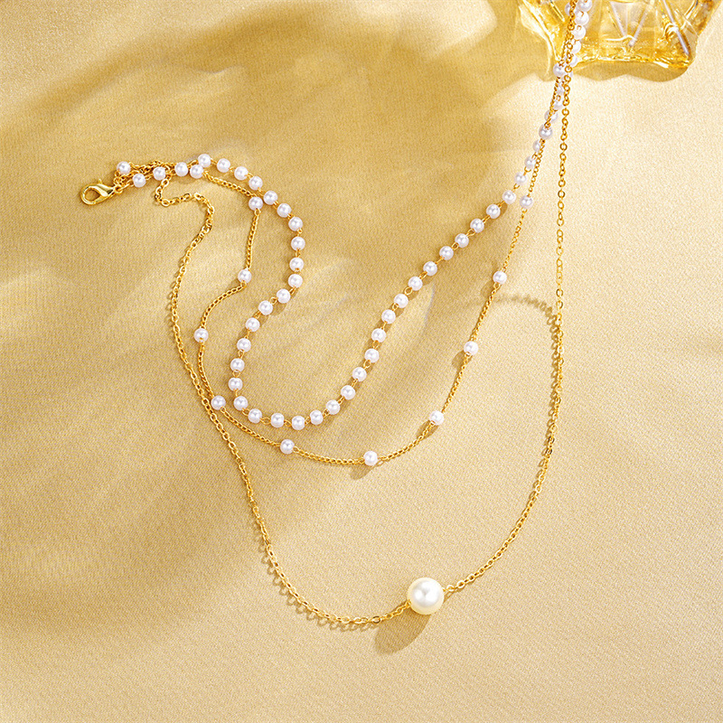 欧米のファッション的な愛のペンダントのネックレスの女性の組み合わせの多層の真珠の首のチェーンのネックレスのファッションの鎖の骨のチェーンの卸売りを防ぎます。