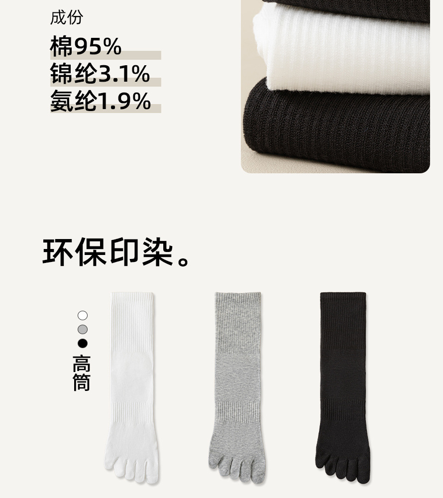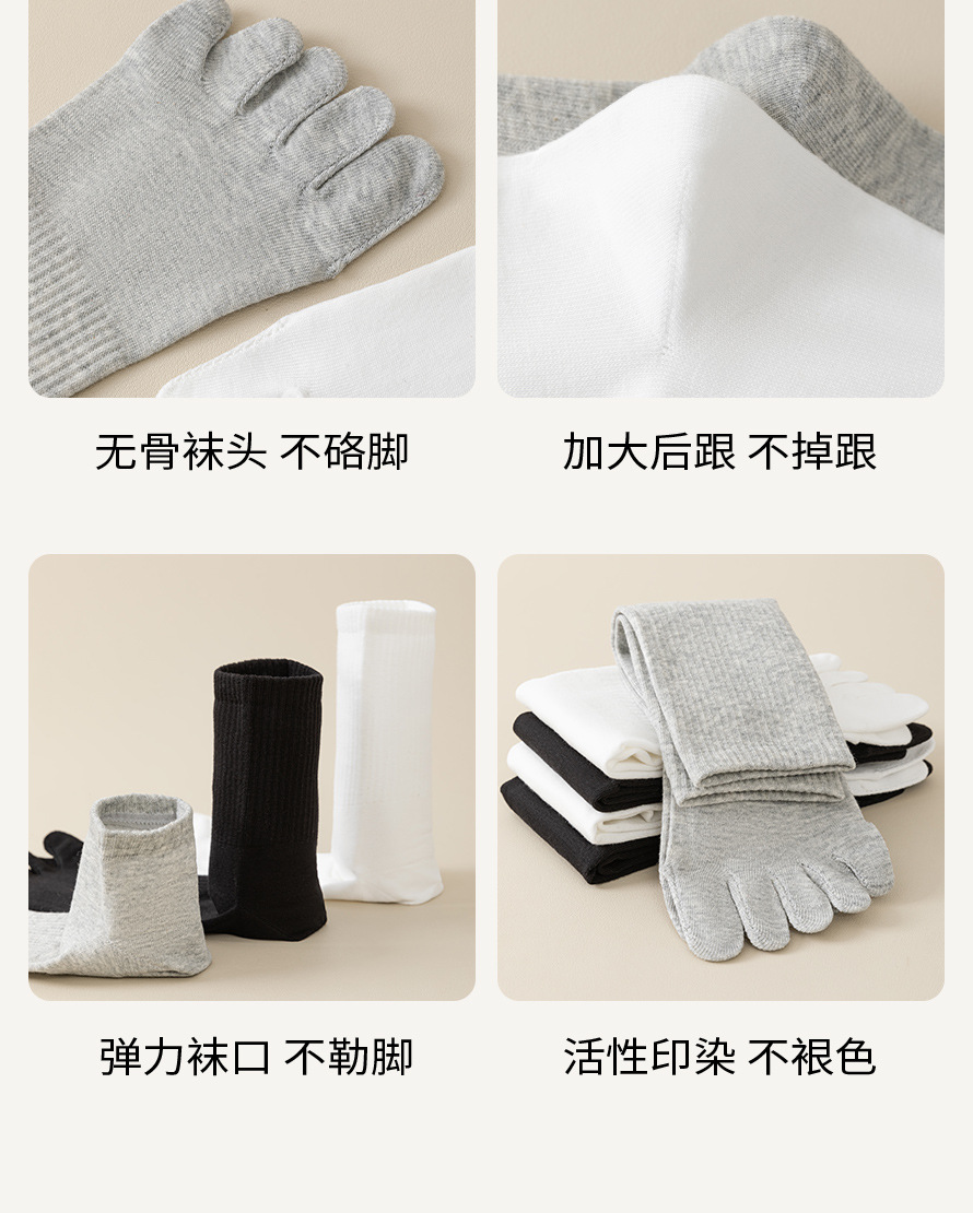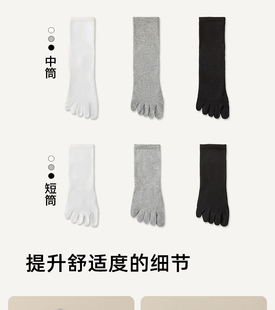五指纯棉袜子男士秋冬季抗菌防臭吸汗运动无骨长袜纯色分趾中筒袜