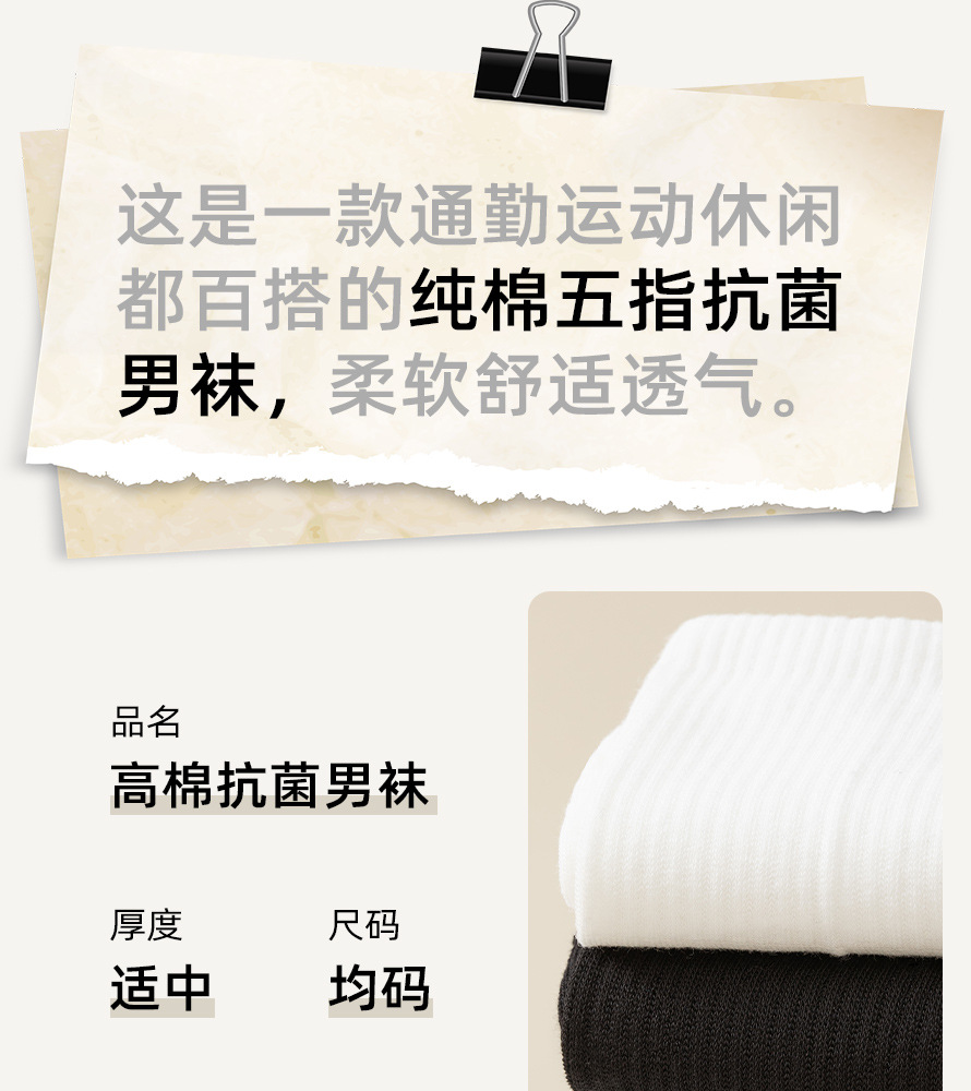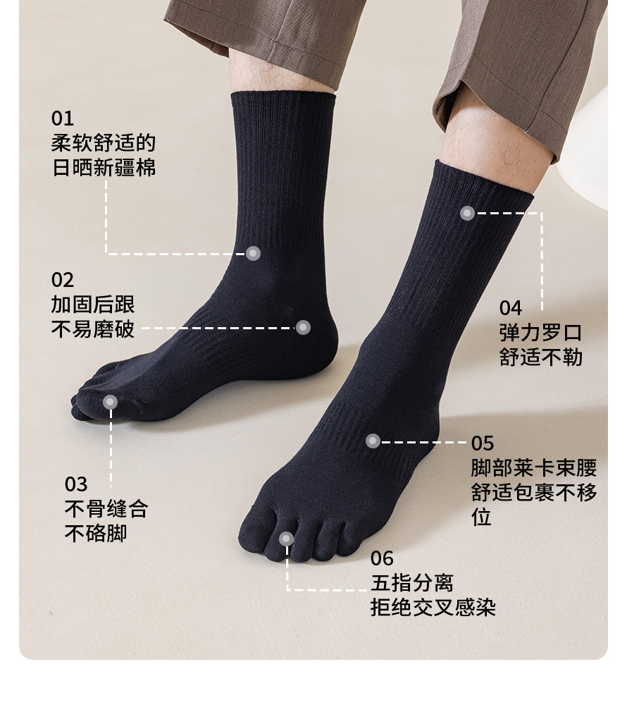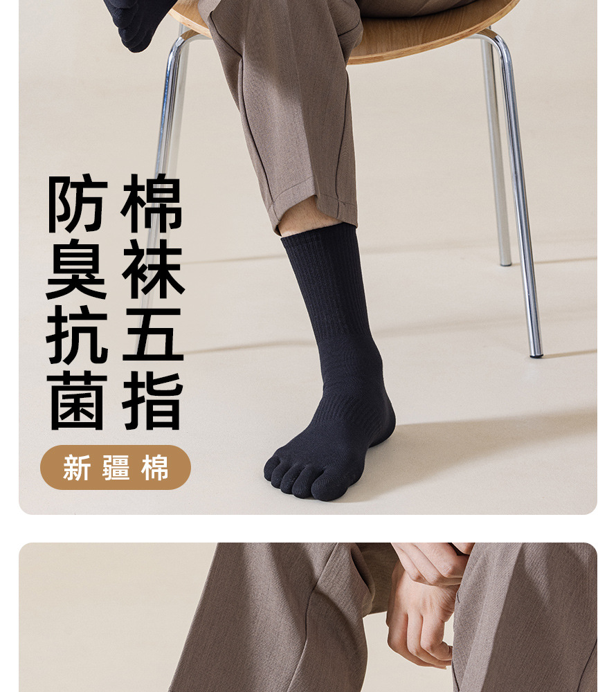 10a抗菌袜子男纯棉吸汗防臭中筒袜分趾袜秋冬男士五指袜诸暨袜子