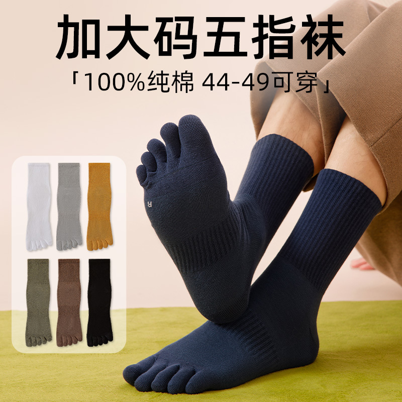 纯棉袜子男款秋冬保暖加大码五指袜10A抑菌防臭无骨休闲分趾袜子