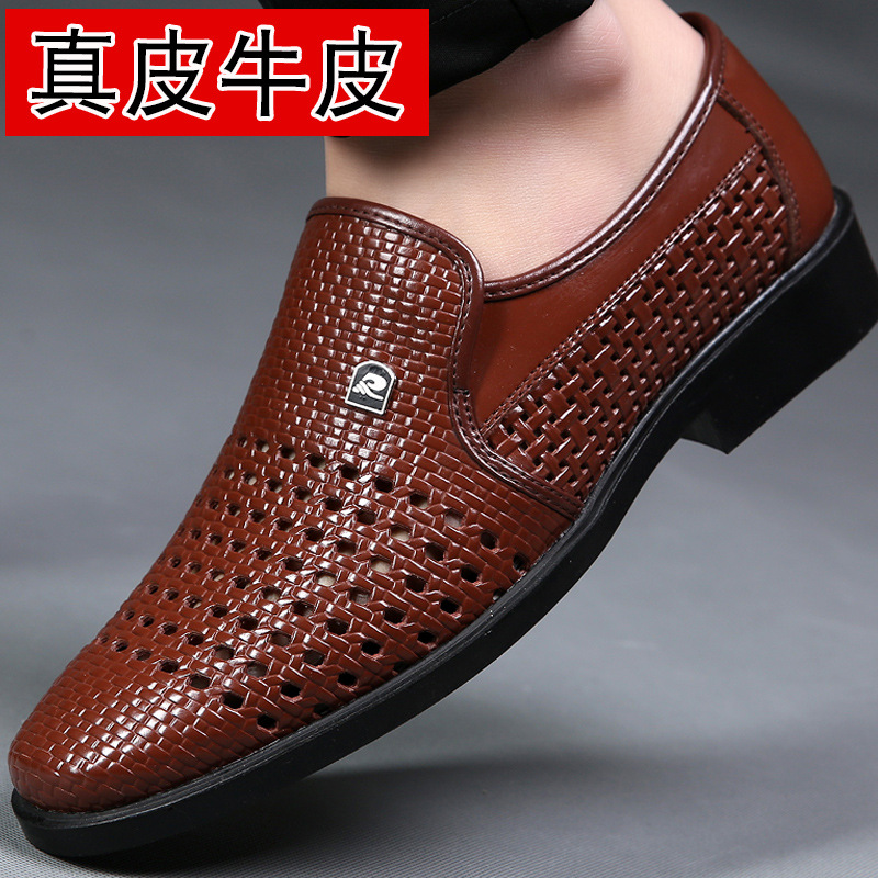 本革メンズサンダル革靴夏レザーサンダル男穴通気透かし彫りホワイトビジネス正装カジュアルシューズ