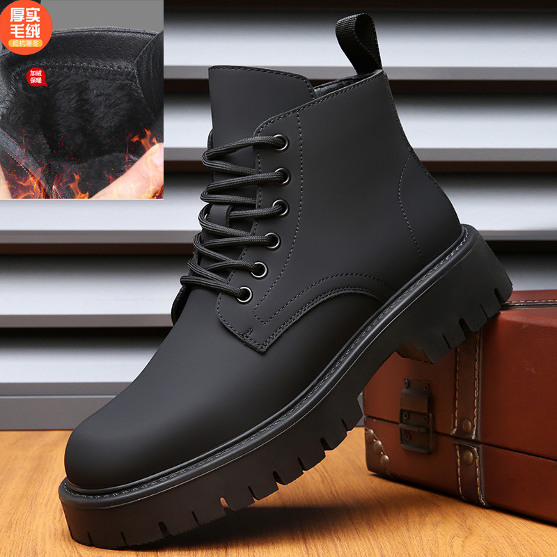 マーティンブーツ男性冬の本革英倫風チェルシー男性ブーツとベルベットのブーツのファッション