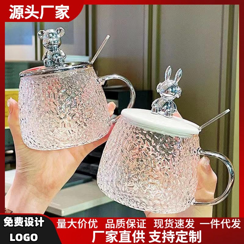 LOGOカスタム高颜値かわいいマグカップ漫画熊グラスネット赤爆金ガラスハンドル牛朝食カップ