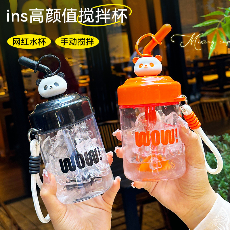攪拌カップ新型ガラスコップ手動攪拌高颜値学生がコップを飲んでコーヒーを飲む