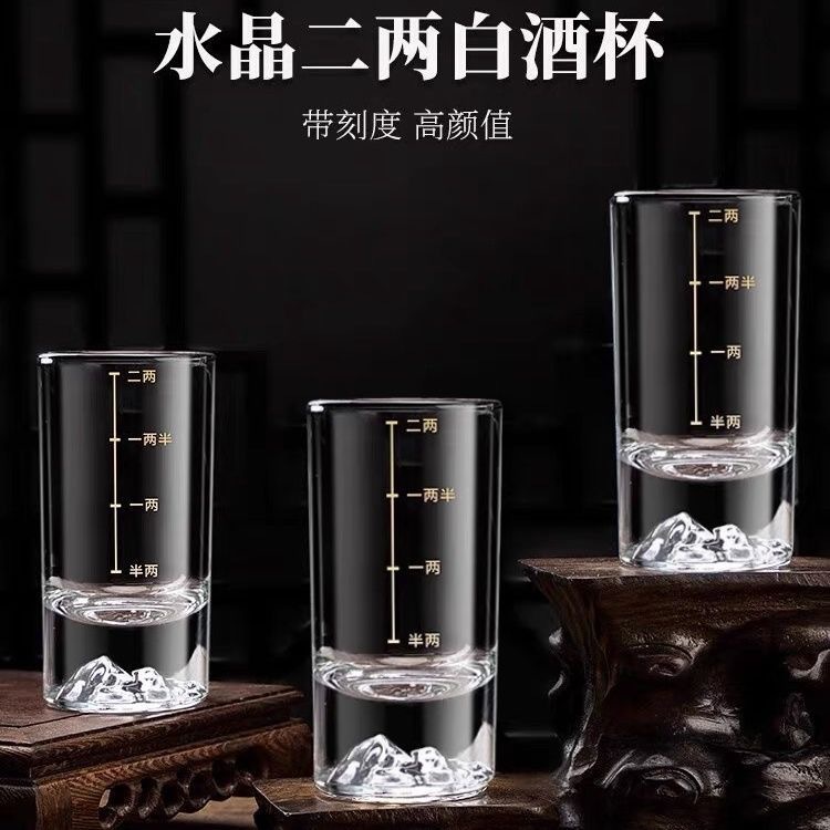 氷山の底の二両の白い杯の家庭用は目盛りの酒を持っています。