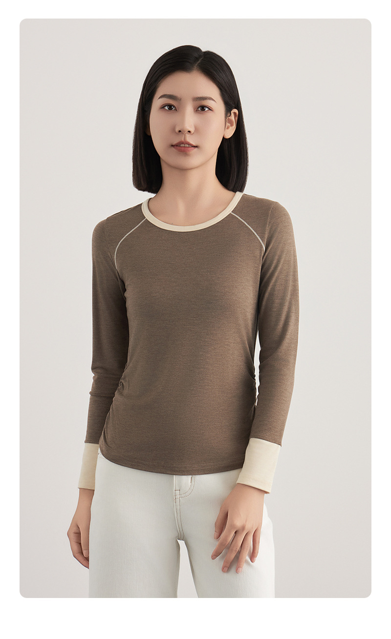 韓国風レディースインナーシャツ 春夏新作 モダール素材 高級感トップス レディース 丸首 インナー スリムフィット 長袖Tシャツ