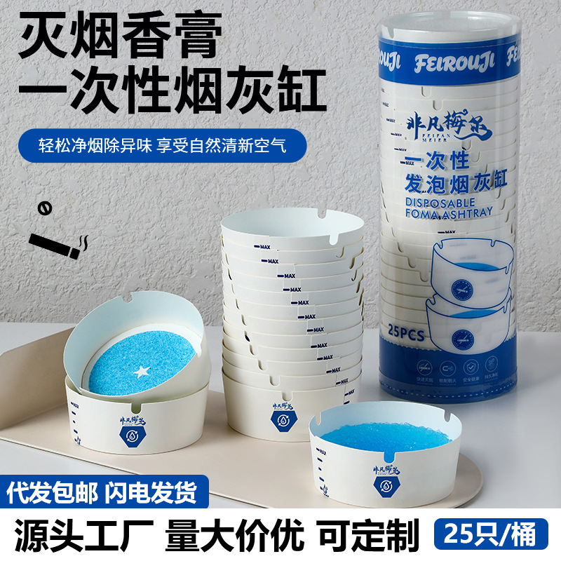 一次性烟灰缸纸质自带发泡灭烟沙电竞馆快速吸附防飞宾馆办公室用