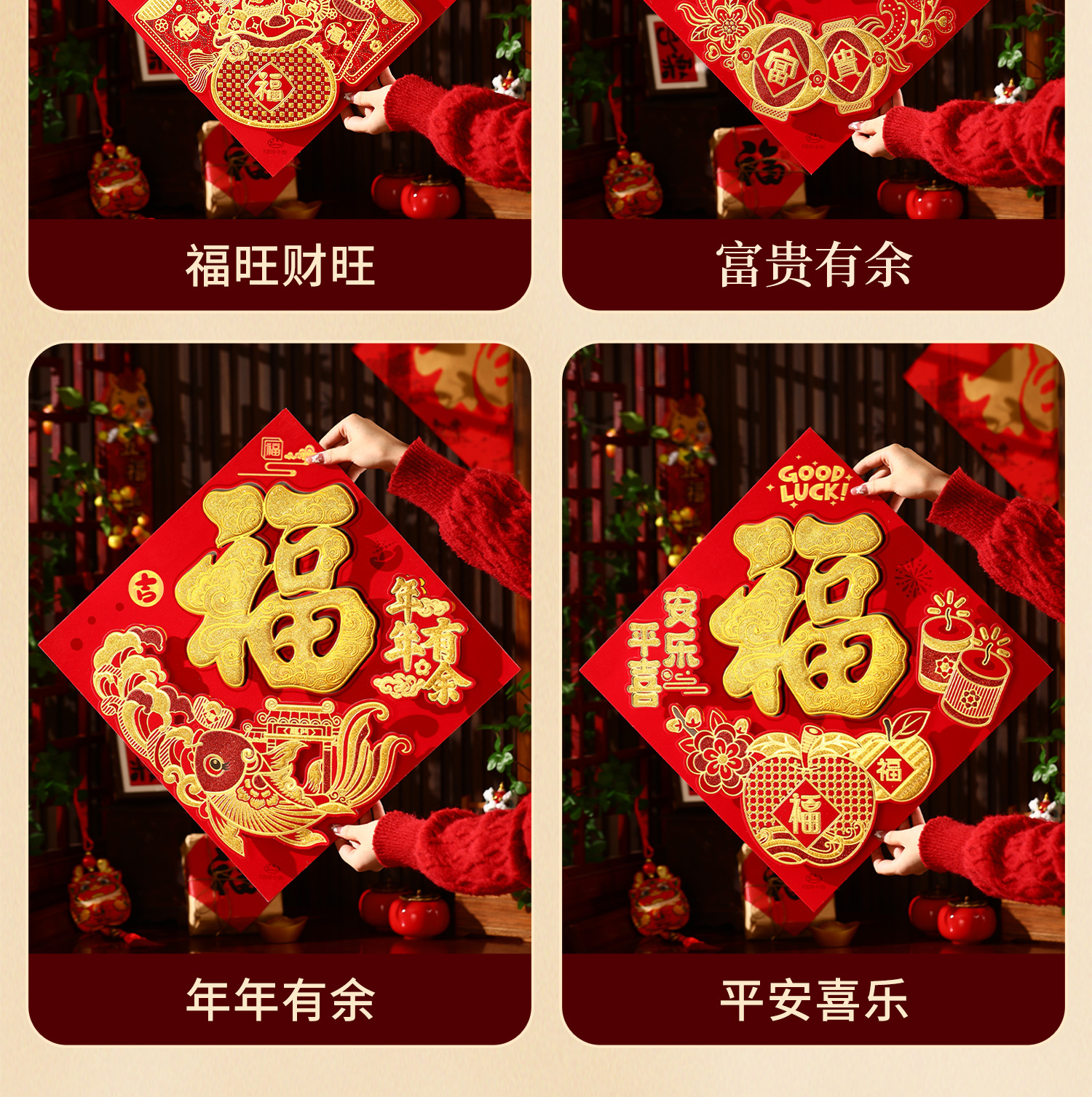 2026年馬年立体福字ステッカー、新年春節福字ステッカー、装飾年画、年物卸売