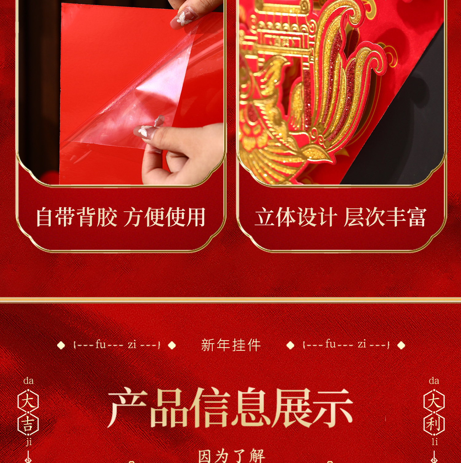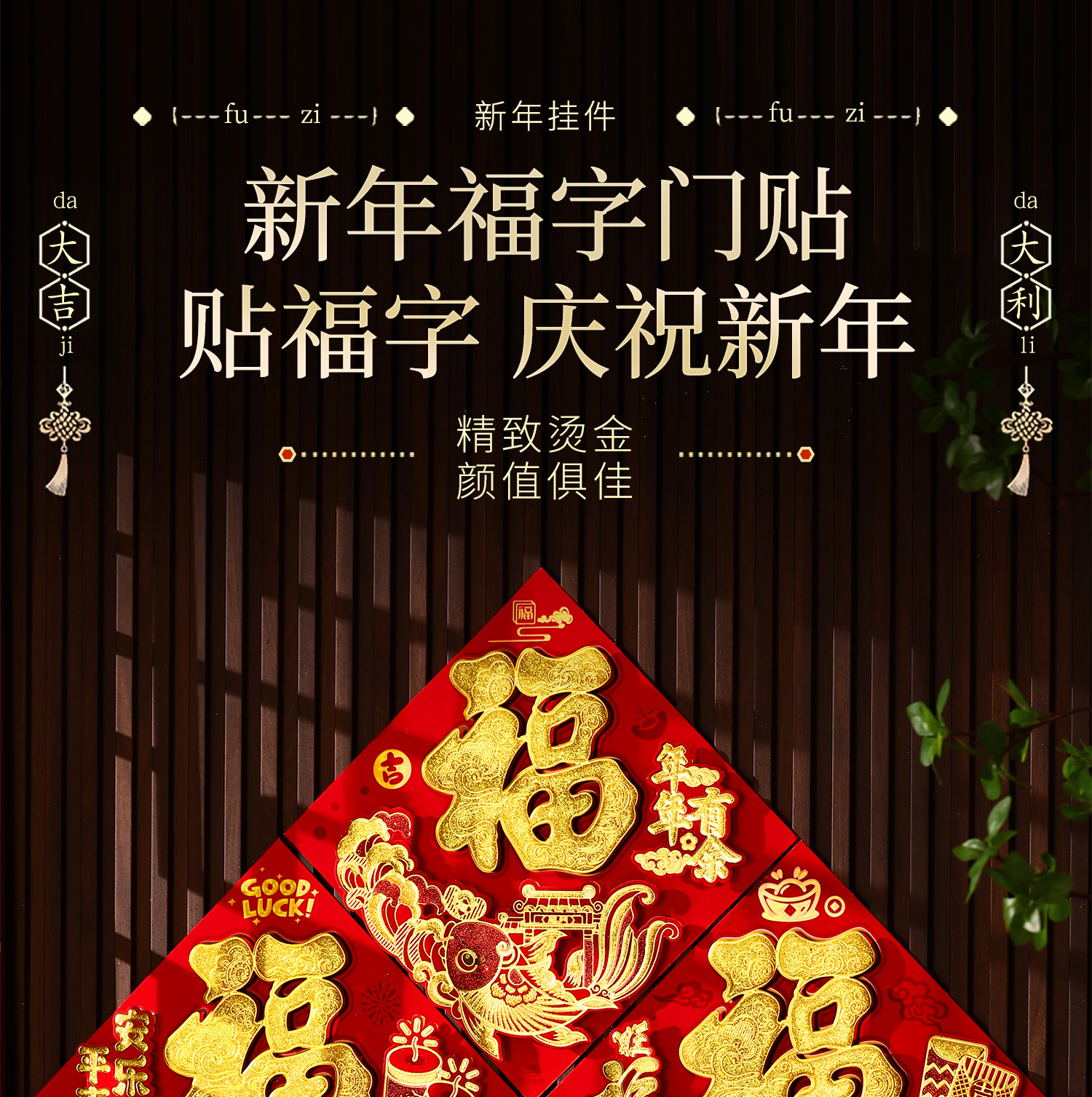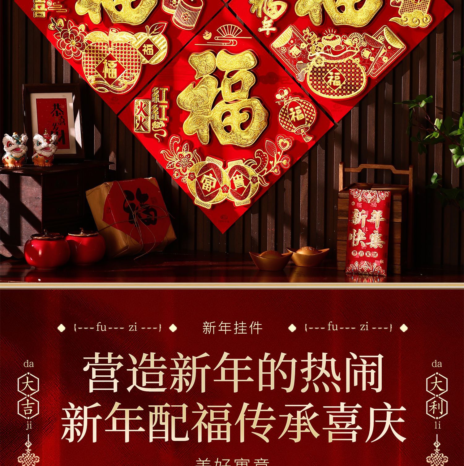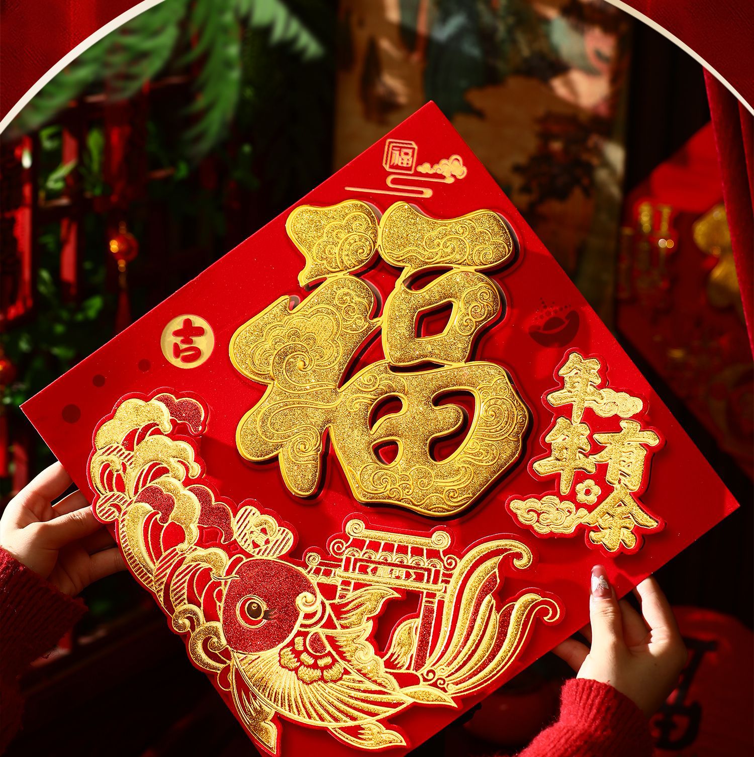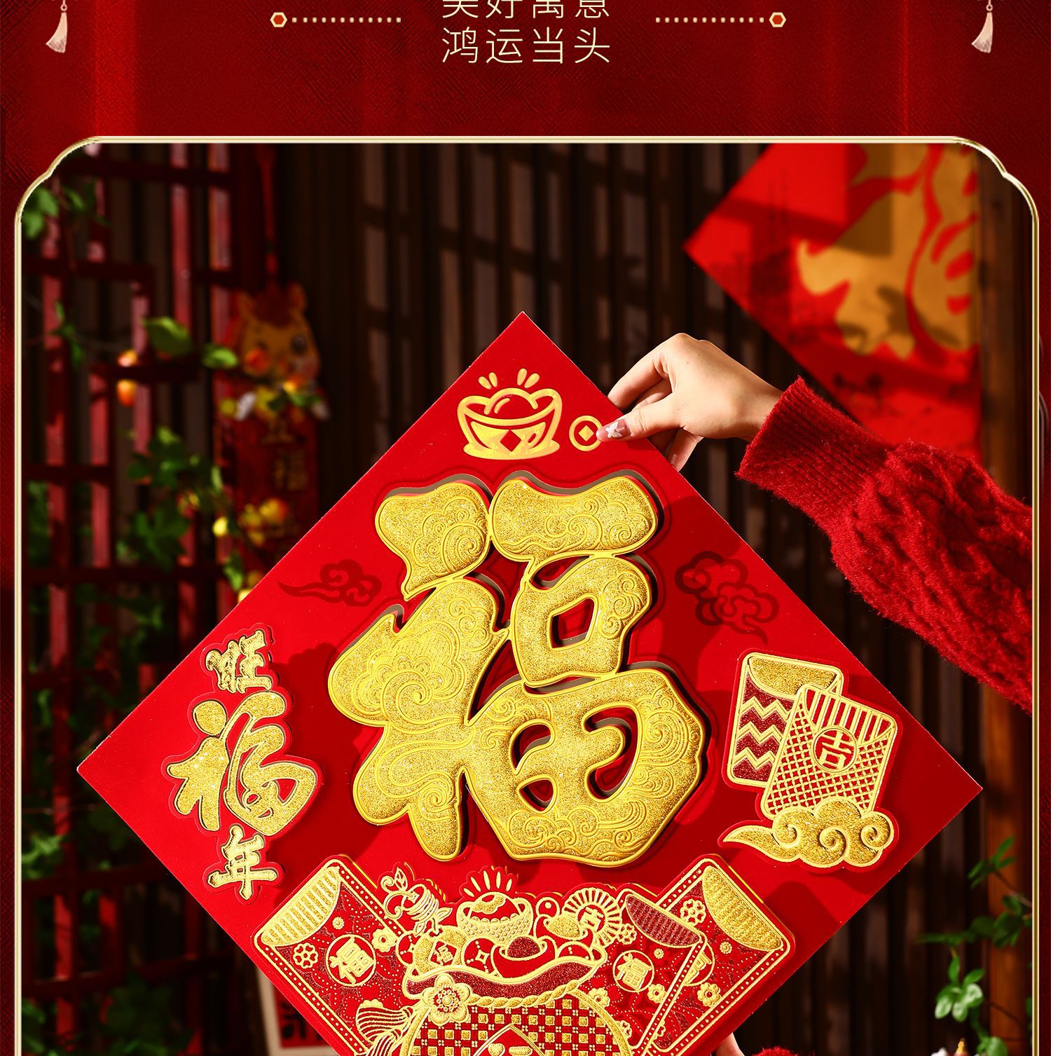 2026新款新年立体福字植绒创意门贴春节过年大门装饰绒布自粘门幅
