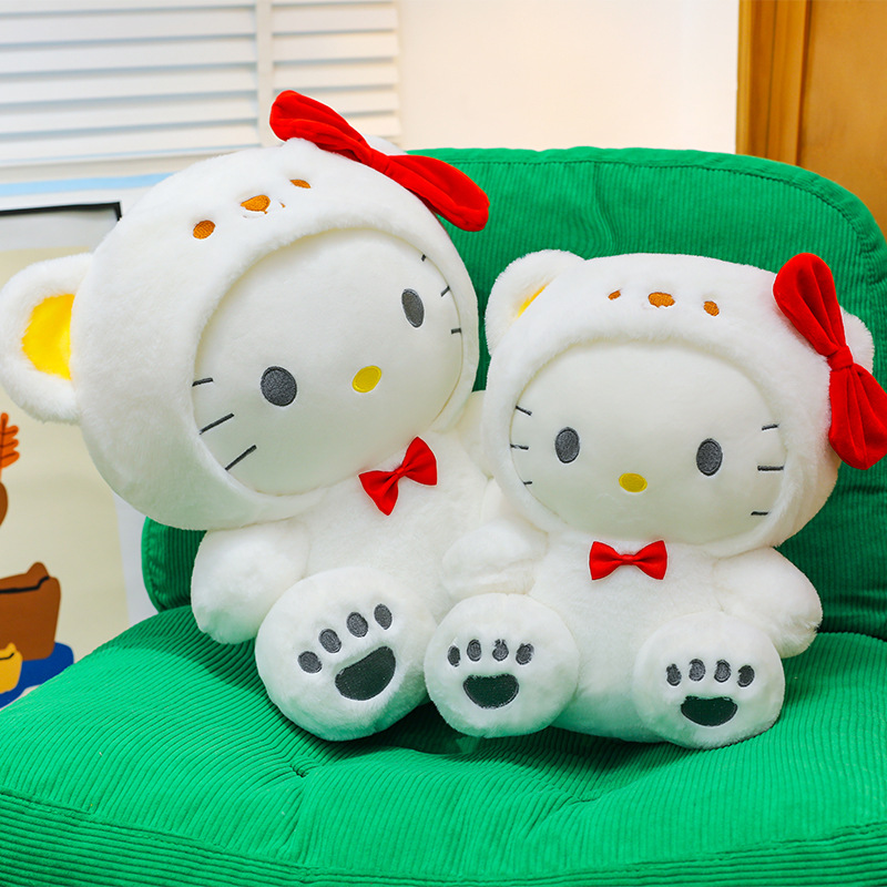 跨境白熊KT猫卡通猫咪毛绒玩具变身KT玩偶抱枕抓机礼品兑换批发