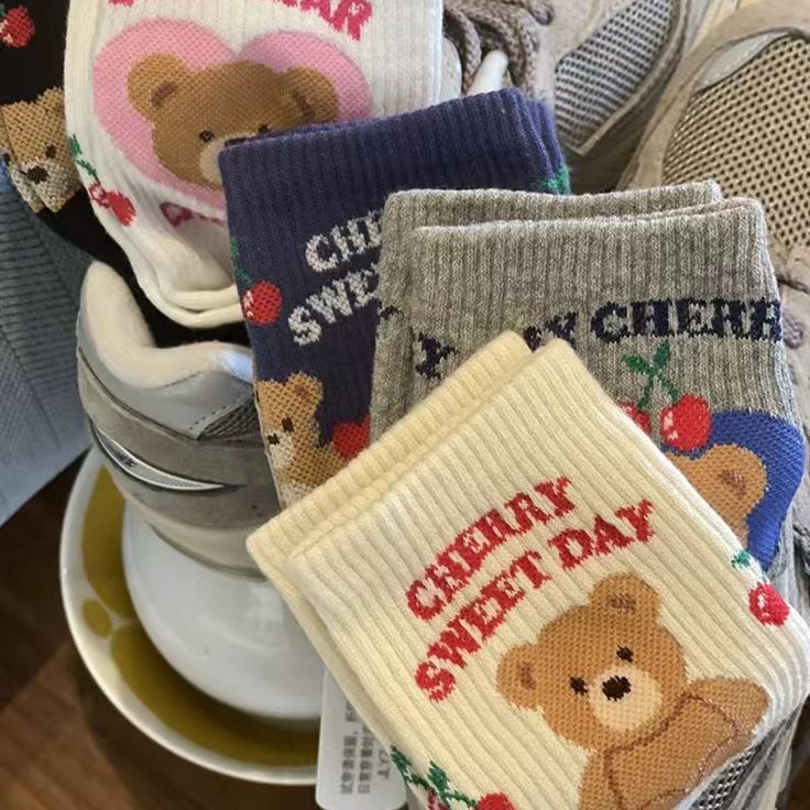 韓国靴下女性のミッドウエストソックス鮮やかな漫画クマ綿の靴下秋と冬ミッドチューブカレッジ東大門クロスボーダー卸売