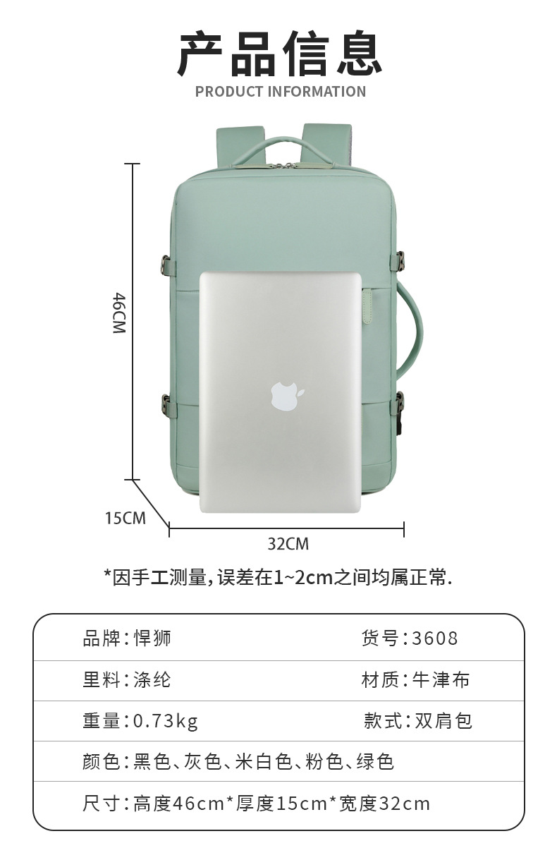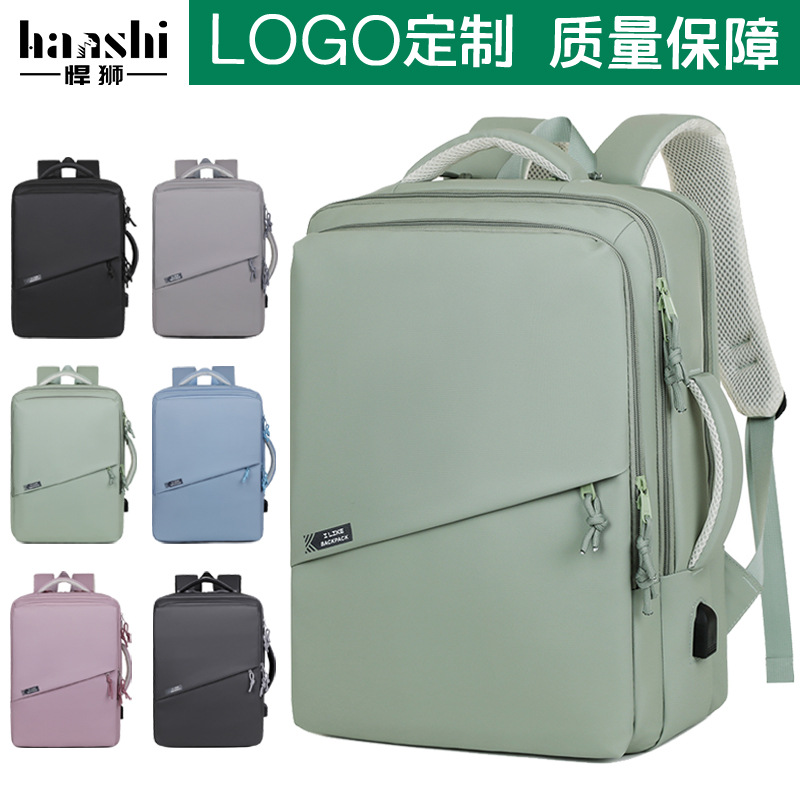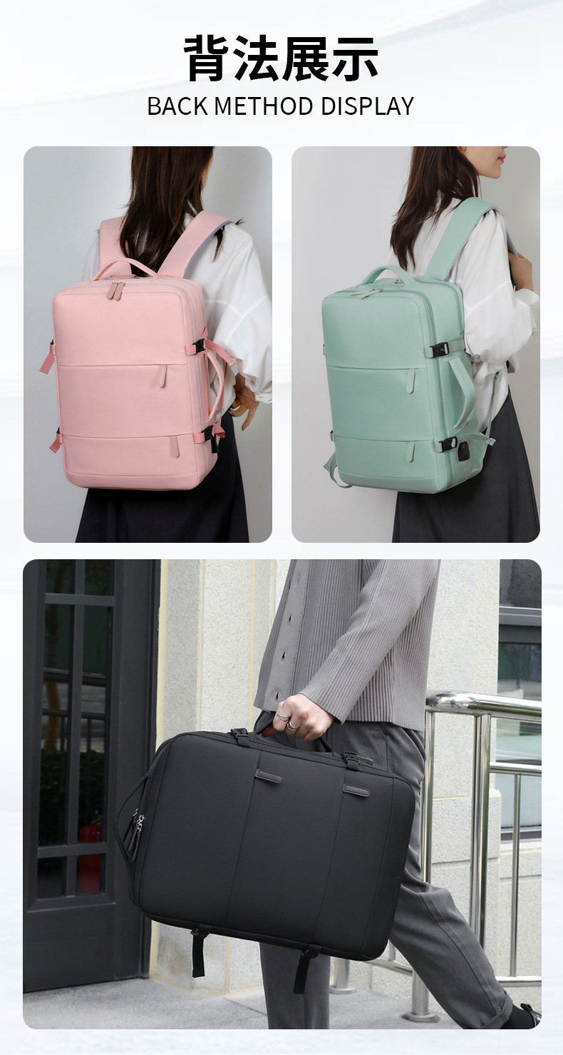 跨境多功能双肩书包新款简约纯色大容量商务电脑包出差通勤旅行包