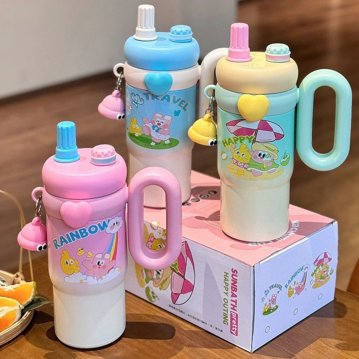 大容量ストローカップ漫画ステンレス保温カップ女子カップins高颜値携帯ハンドル氷覇カップ