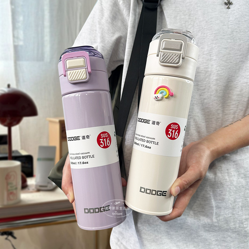 ドッジ希楽ドジャース高颜値新型316ステンレス学生ストロー付き老人シンプル保温カップ