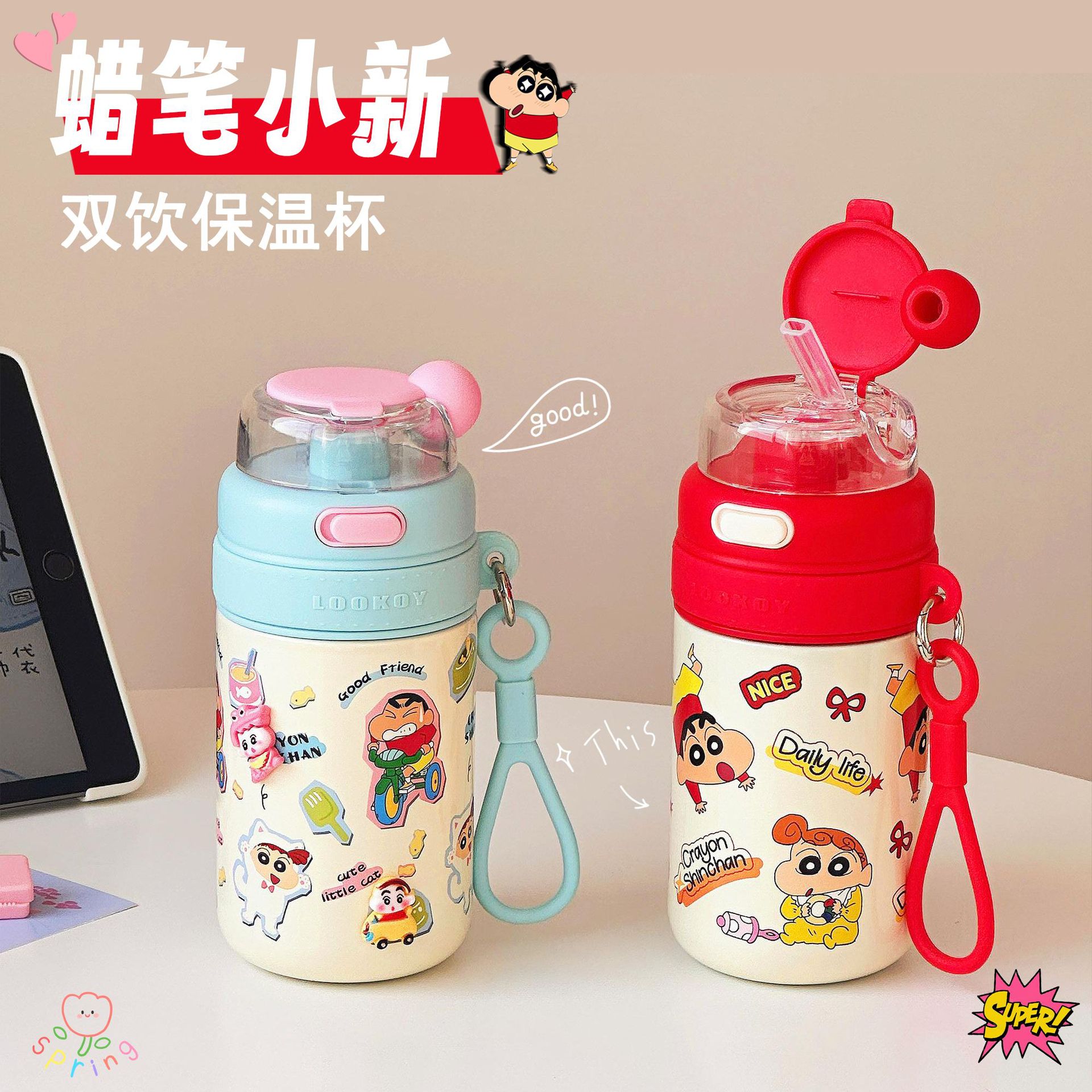 クレヨンしんちゃん魔法瓶カップ 2025 新しい女の子かわいいカップ高価値ダブルドリンクカップ学生学校ギフト