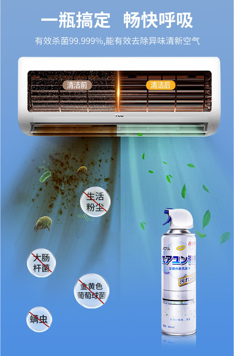 エアコン洗浄剤家庭用洗濯機のオンフック除塵泡洗浄剤汚れ除去異臭エアコン洗浄
