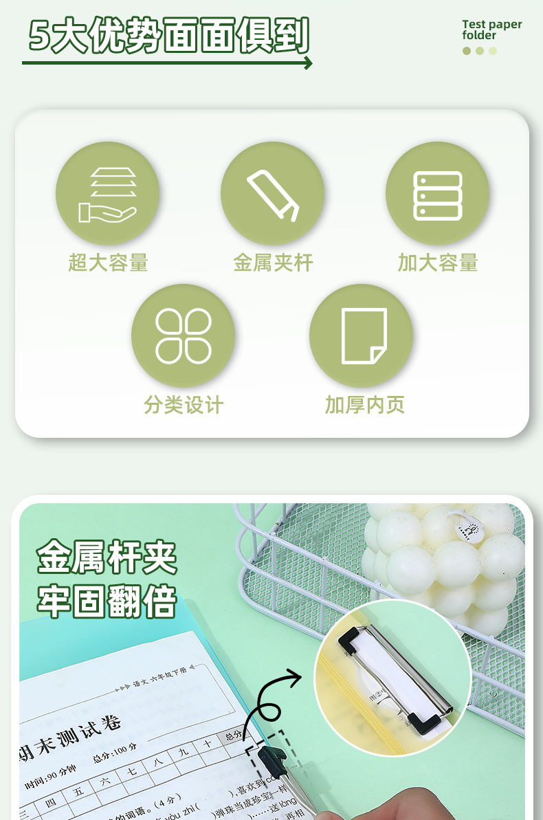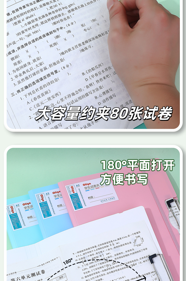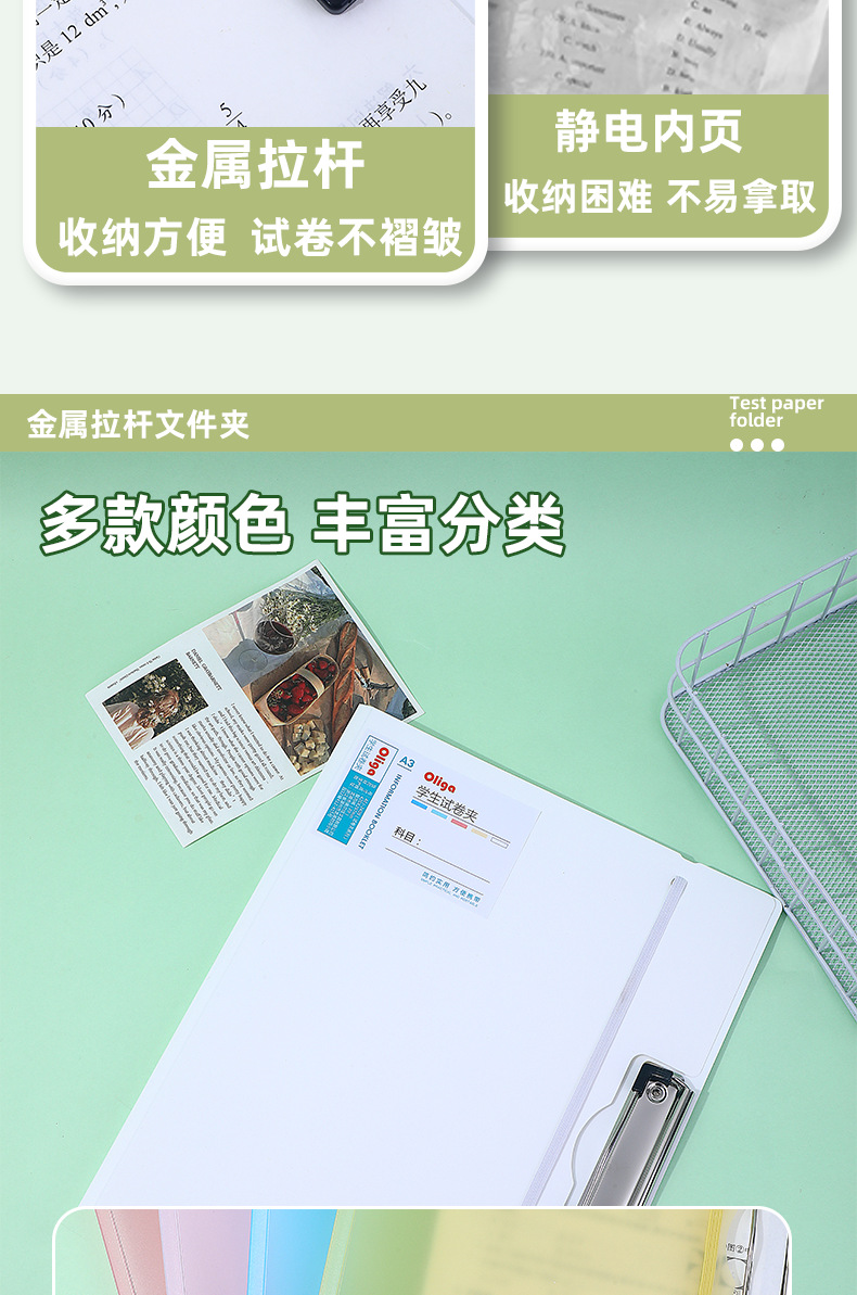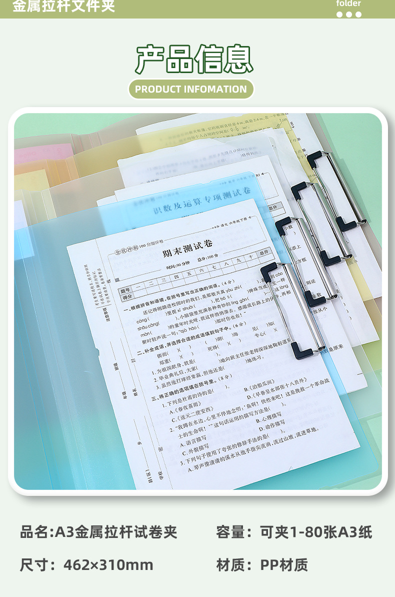 A3試巻ファイル学生試巻収納クリップ資料冊大容量試巻クリップ科目分類整理神器