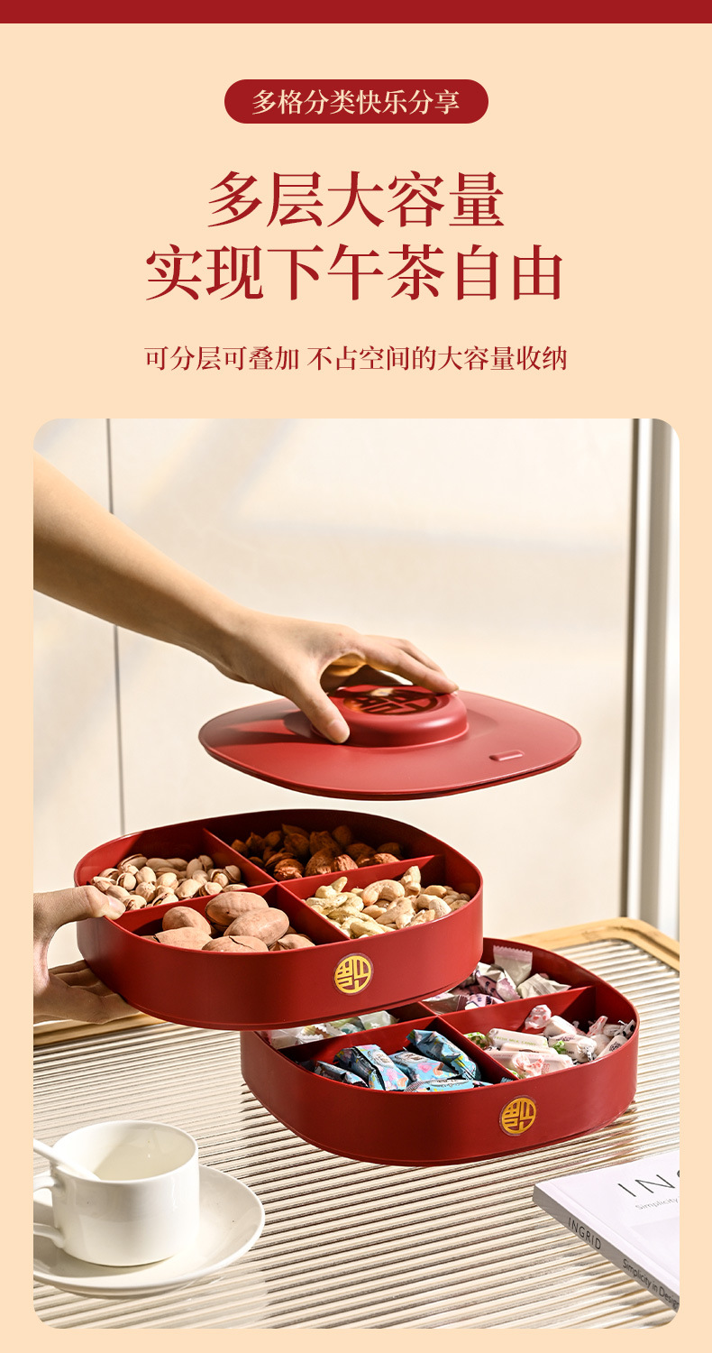 新年干果盘客厅家用喜庆糖果盒多层瓜子零食糖果收纳盒茶几糖果盘