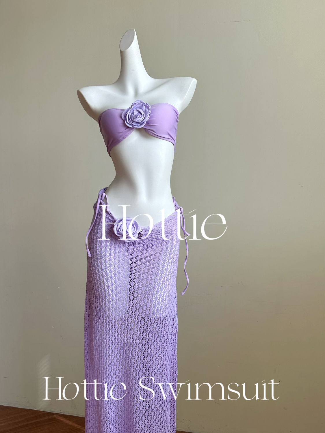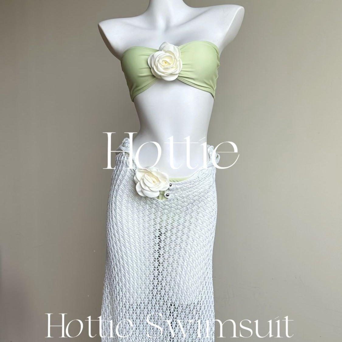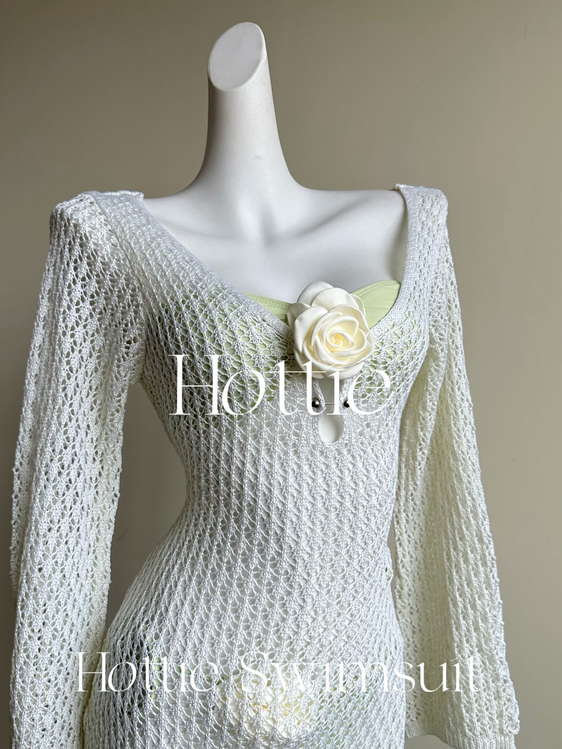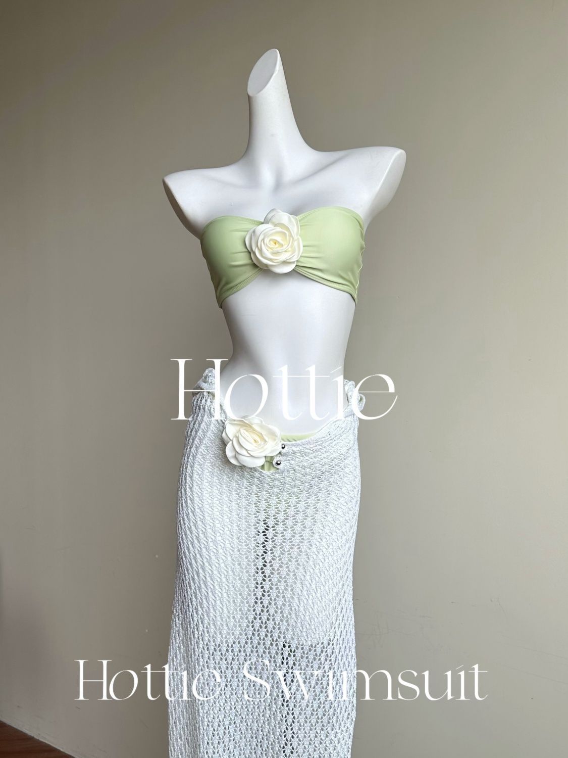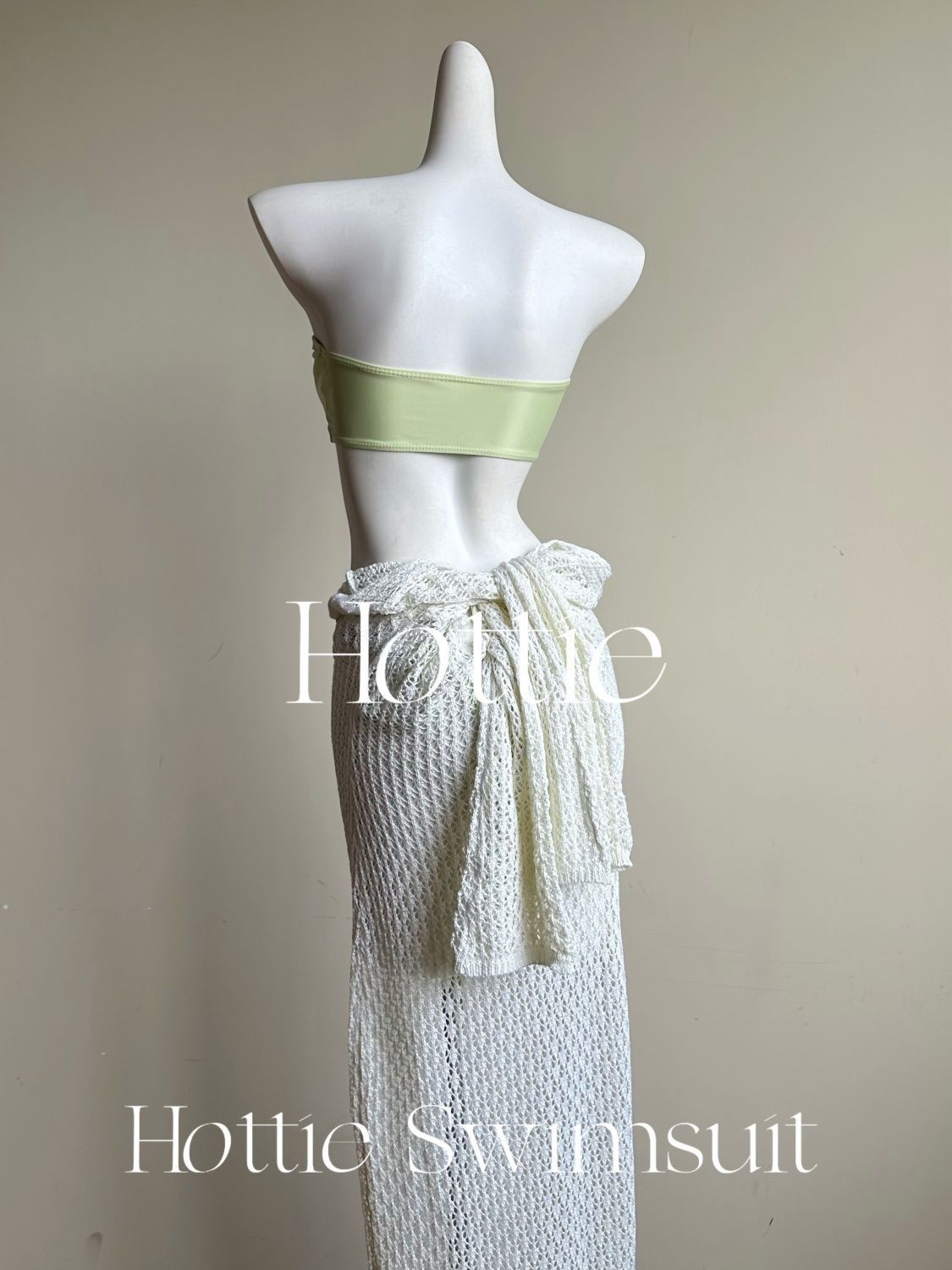 【白色人鱼】泰国纯欲针织长裙比基尼三件套海边度假拍照分体泳衣