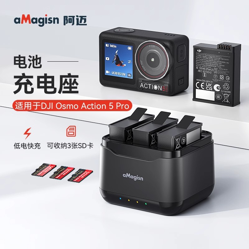 AMagisn適用/大疆DJI Osmo Action5 Pro電池充電スタンド充電執事充電器