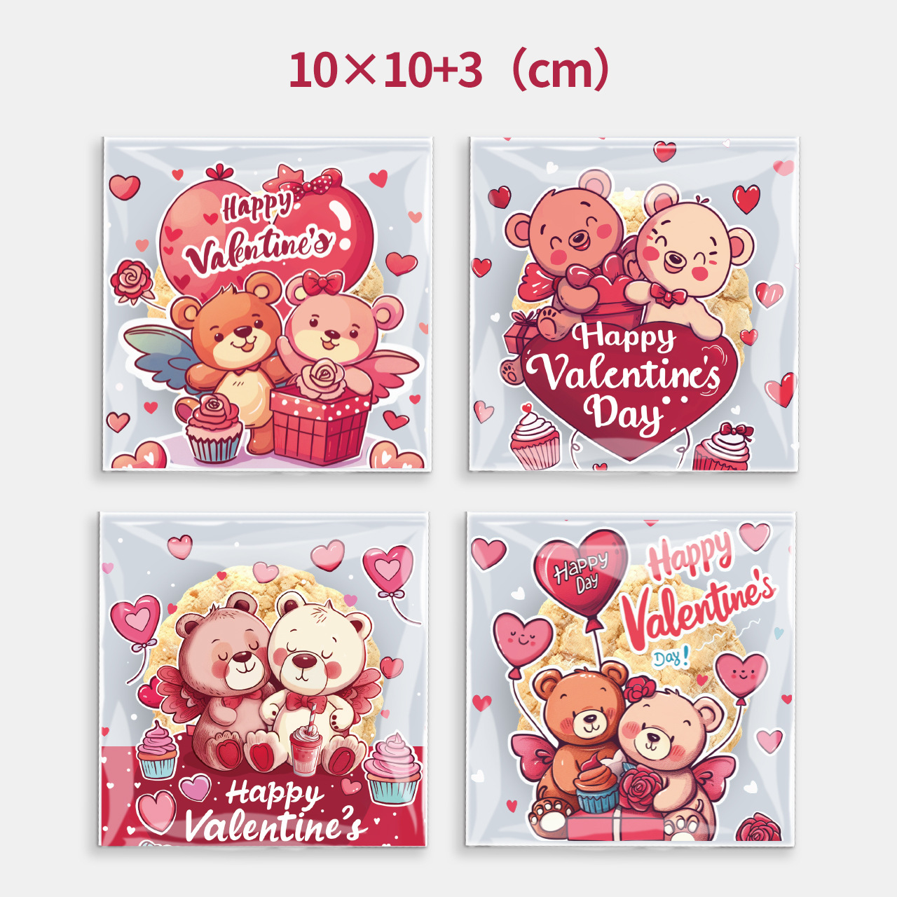跨境新款情人节糖果袋红粉卡通动物熊礼品袋透明零食饼干opp自粘