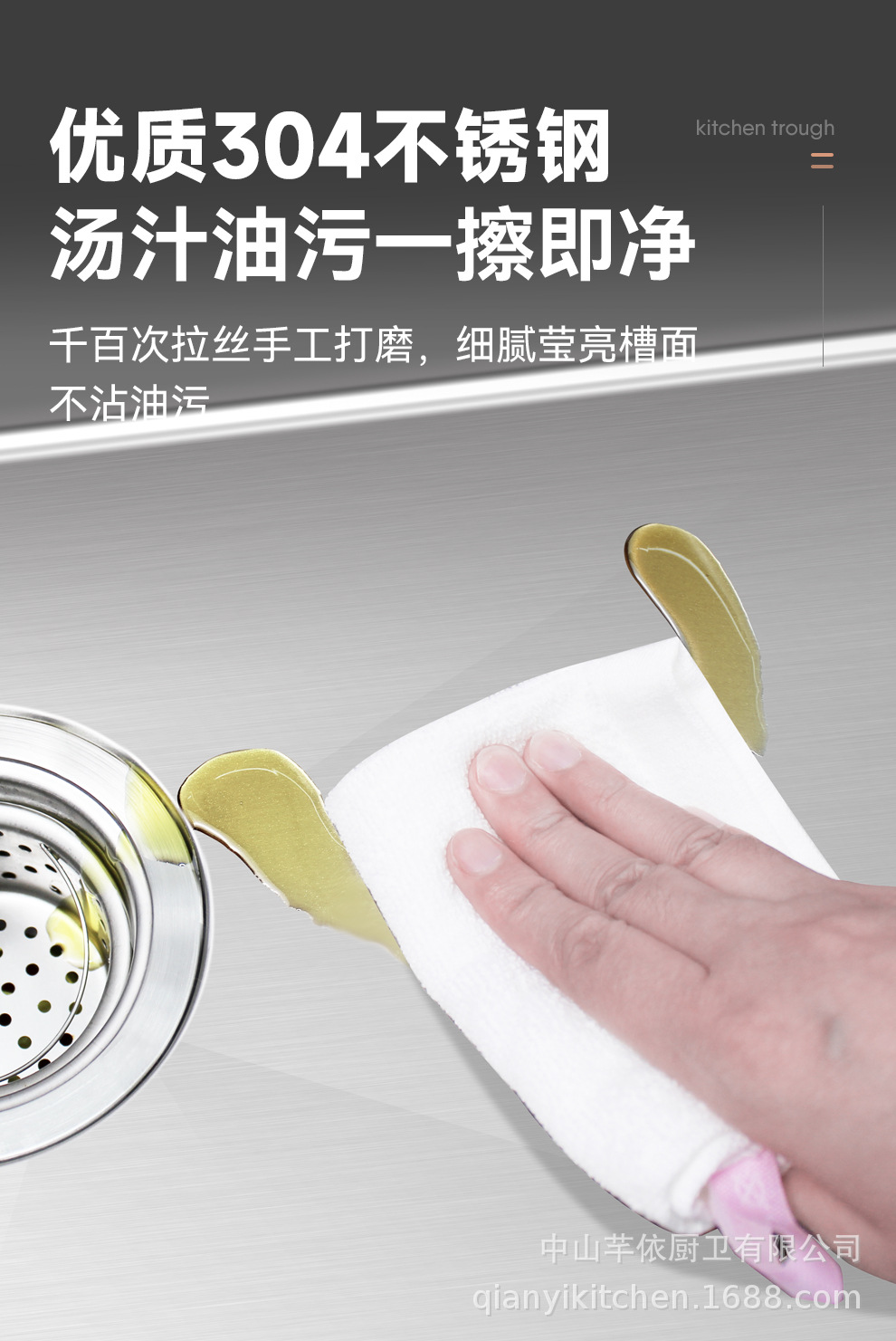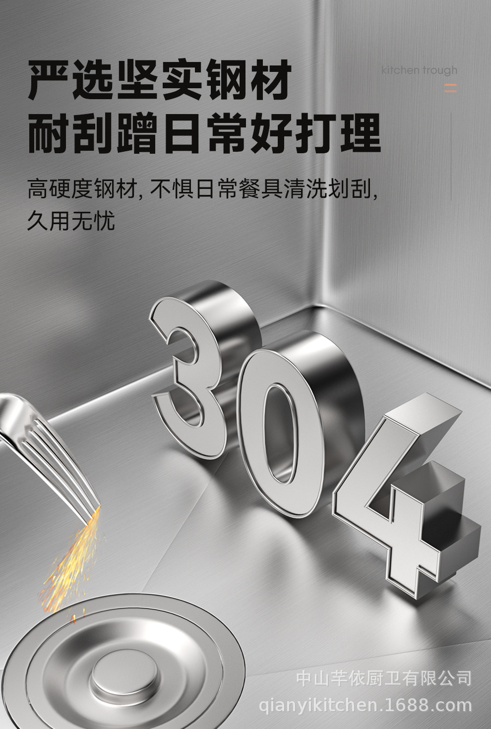 加厚5.0双重集渣水槽大单槽SUS304不锈钢厨房家用洗菜洗碗槽水池
