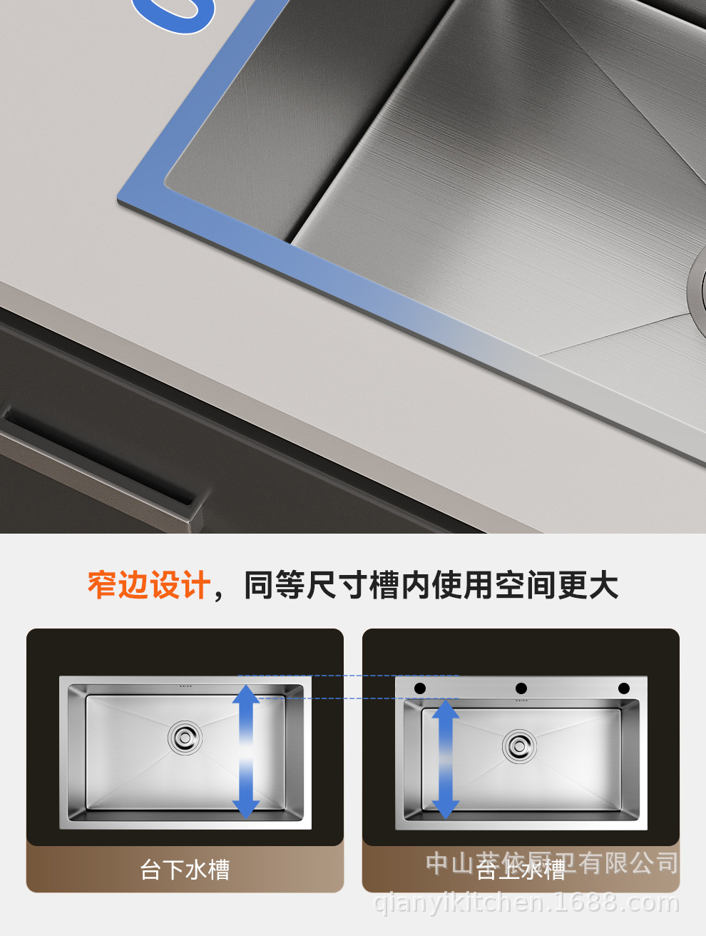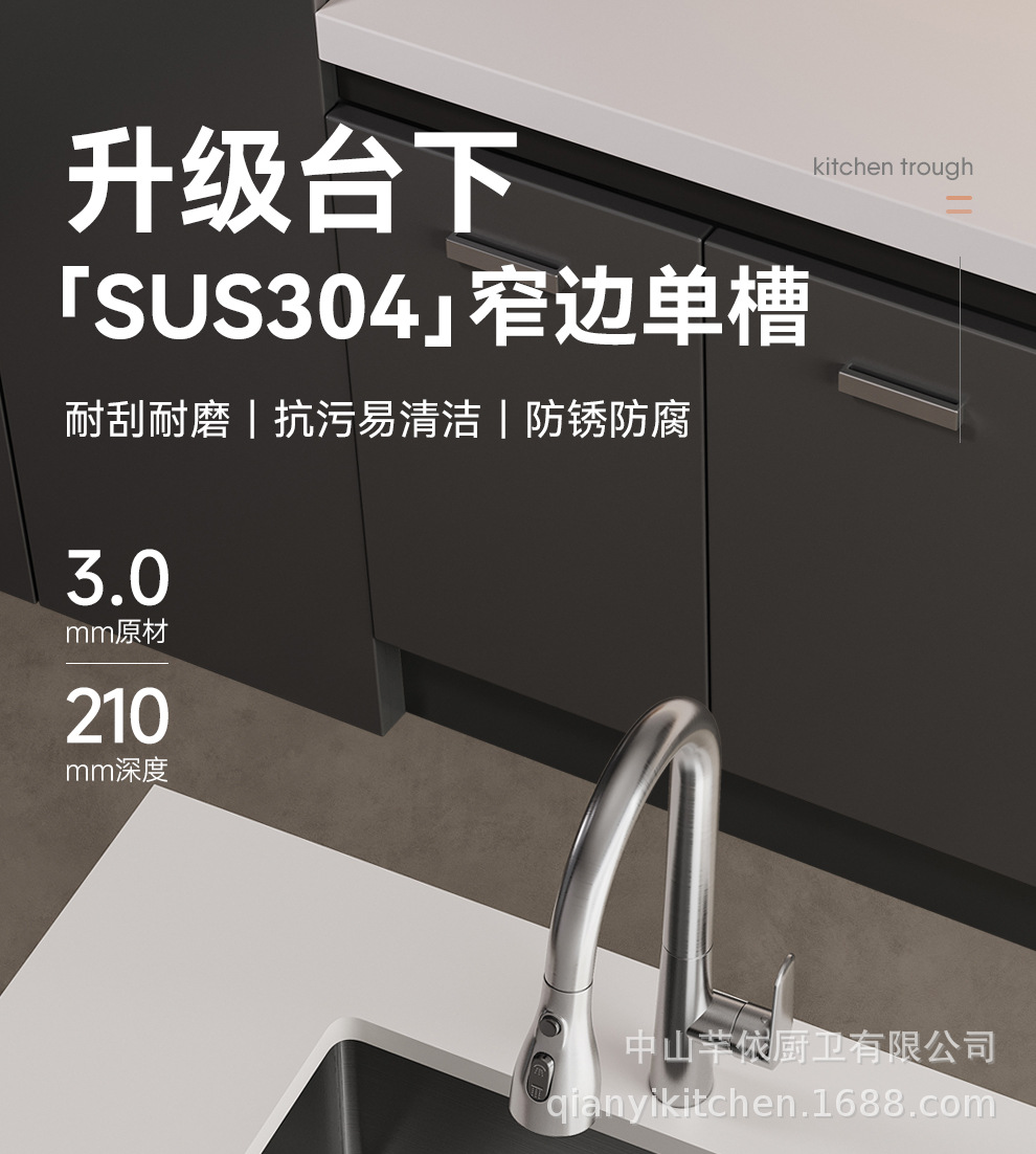 SUS304不锈钢厨房水槽大单槽台下盆厨房水池 不锈钢洗菜盆家用