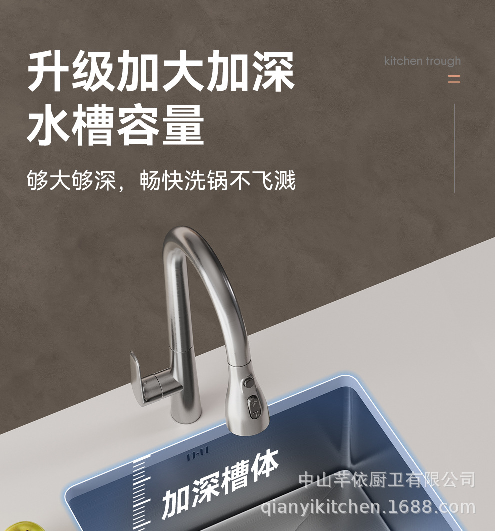 Feiyu キッチンシンク大型シングルスロットナノ SUS304 ステンレス鋼食器洗いシンク多機能厚みのある家庭用シンク