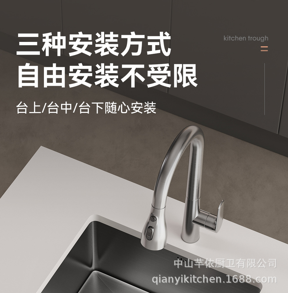 厚さ304伸線キッチン洗面器大単槽ステンレス製手作業水槽セット家庭用台中台下盆