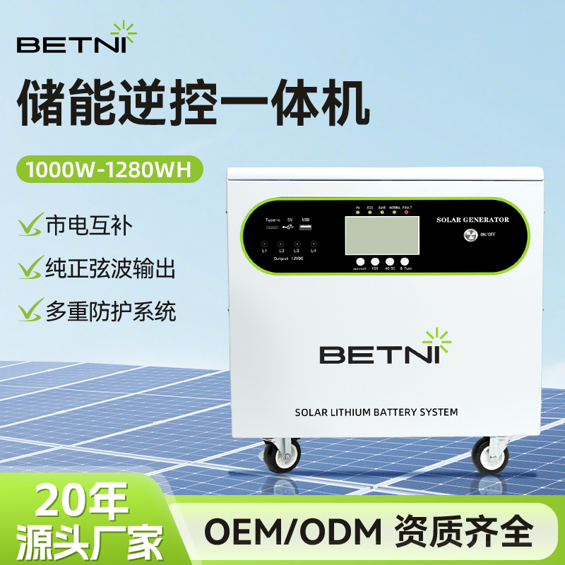 便携式家用储能逆控一体机内置磷酸铁锂电池太阳能光伏1KW纯正弦