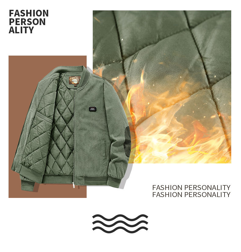 工装ジャケット男性厚手綿ジャケット男性冬コーデュロイジャケット大きいサイズカジュアル野球服保温綿服