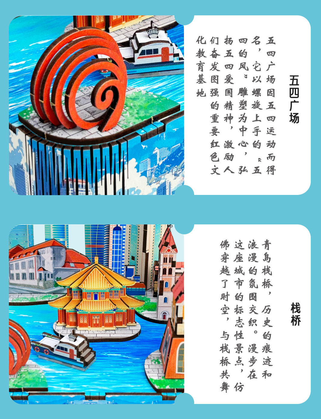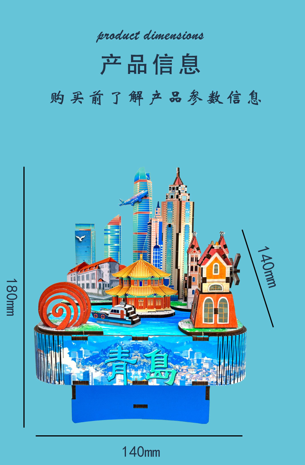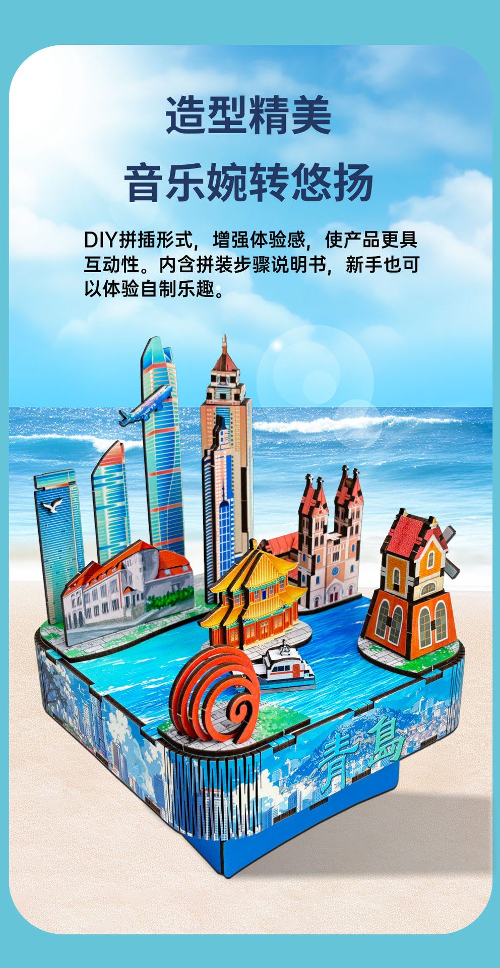 国潮城市青島イメージオルゴール木製立体パズルdiy盛り合わせオルゴールクリエイティブプレゼント置物
