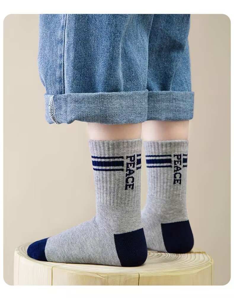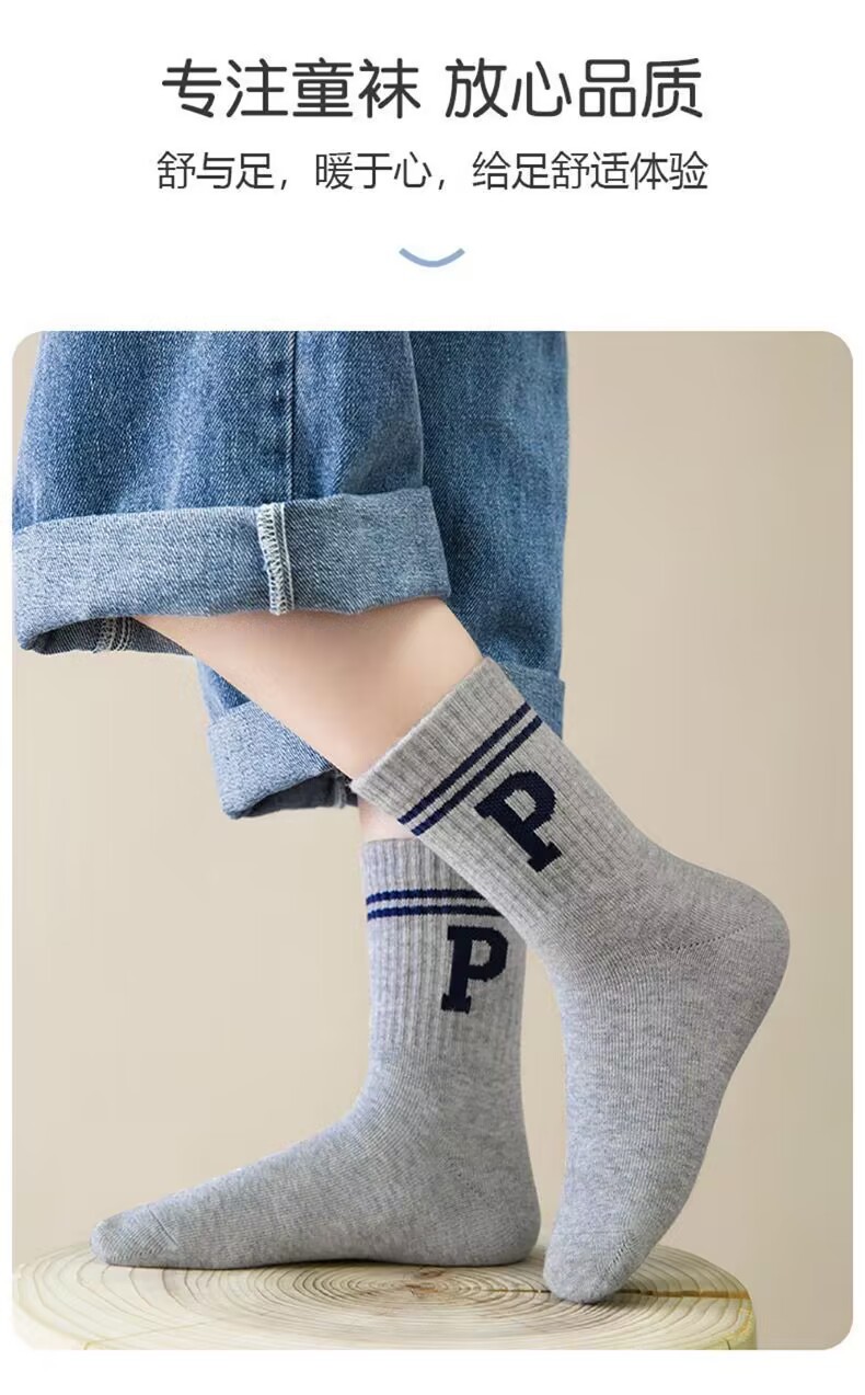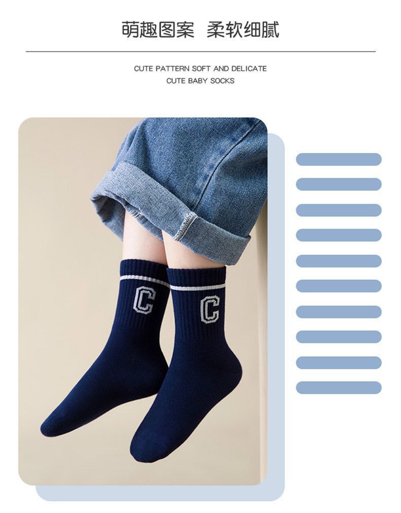 子供用靴下秋冬新作男の子通気中筒靴下防臭吸汗アルファベットストライプファッションスポーツ靴下ストッキング