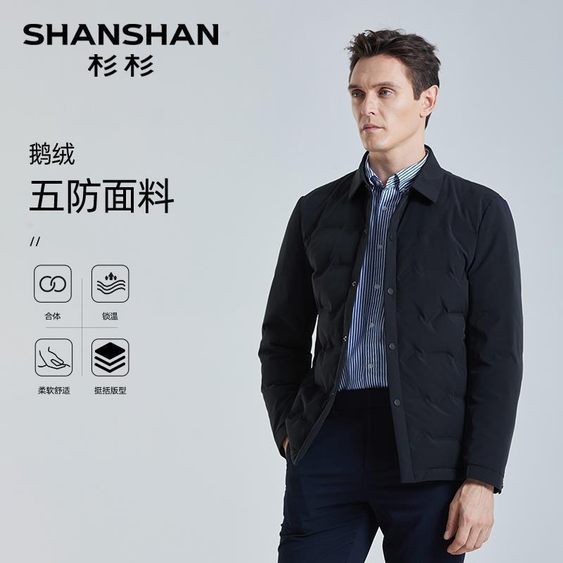 同じ杉杉の服の冬の90のガチョウの毛の男性のダウンジャケットの薄い保温のロックの温度は毛のドリルの外を走りません。