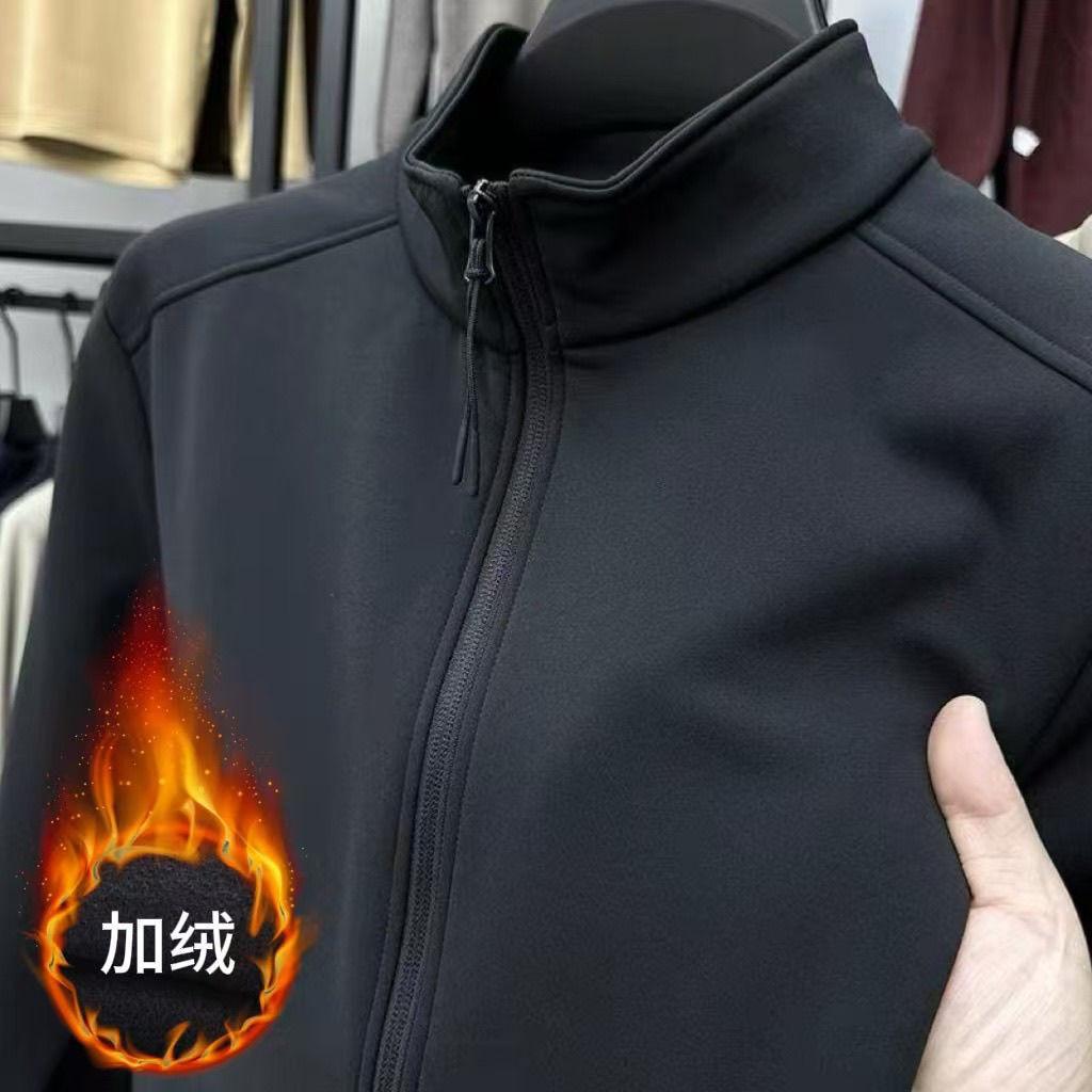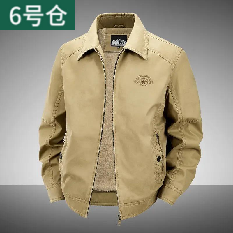 纯棉加绒夹克外套男士宽松休闲中老年爸爸装加厚保暖棉服