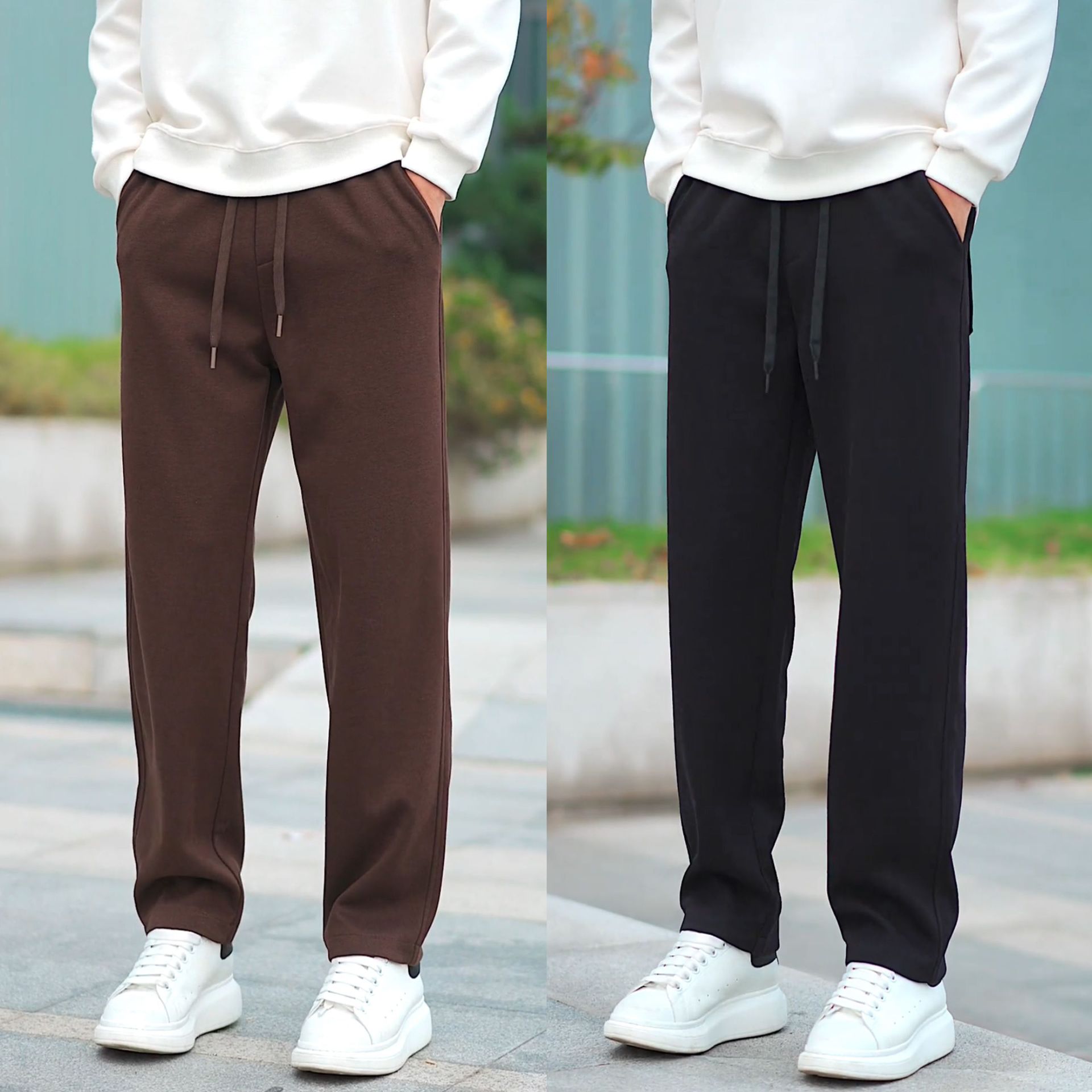 同じ綿ウール男性カジュアルパンツ秋冬新型シンプルなフィット感ストレートパンツファッション弾力性のあるワイド脚